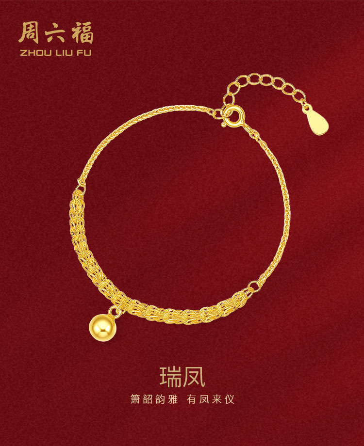 包邮-周六福S925银宫铃同心手链ZLFD071052 支持线下验货