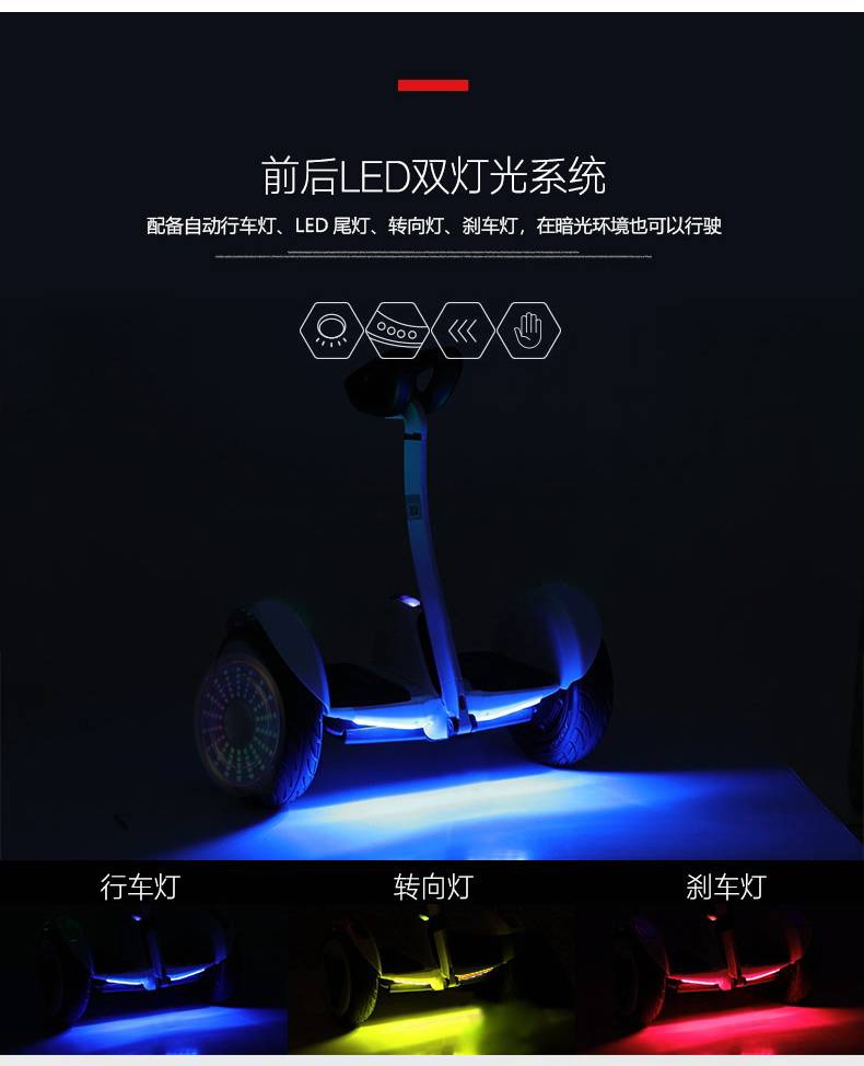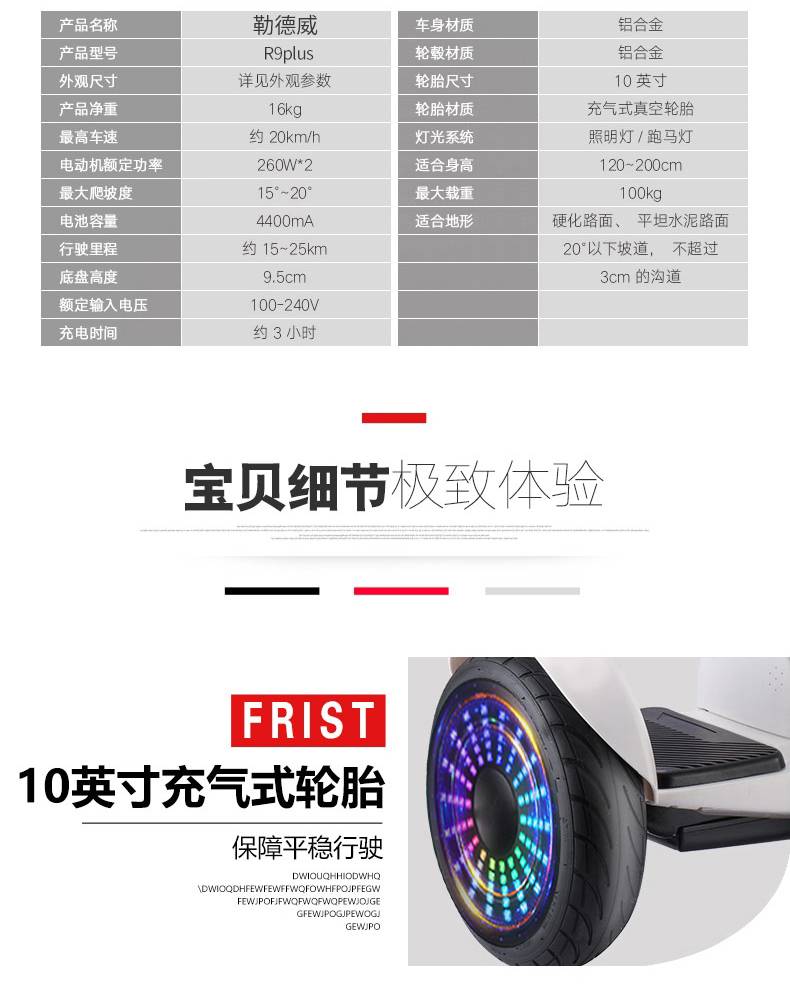 勒德威智能代步平衡车 led跑马灯儿童成人两轮便携电动车R9 plus