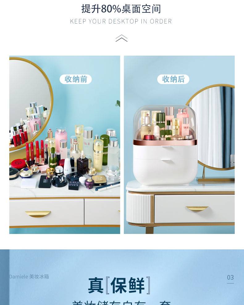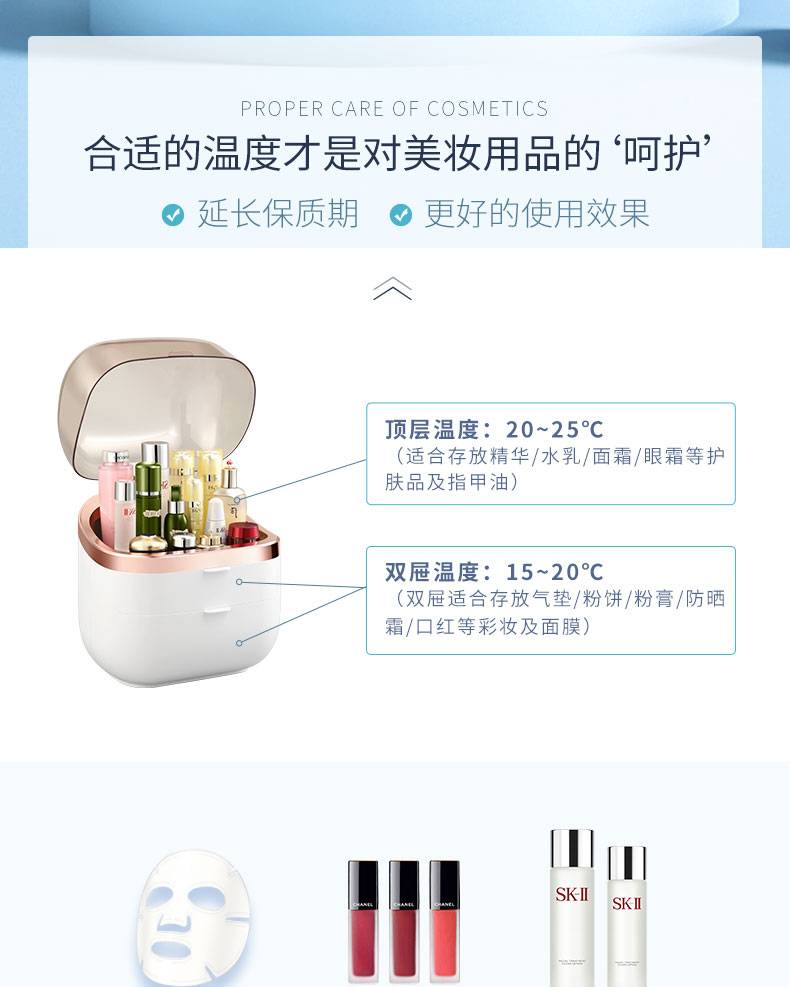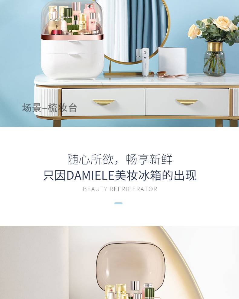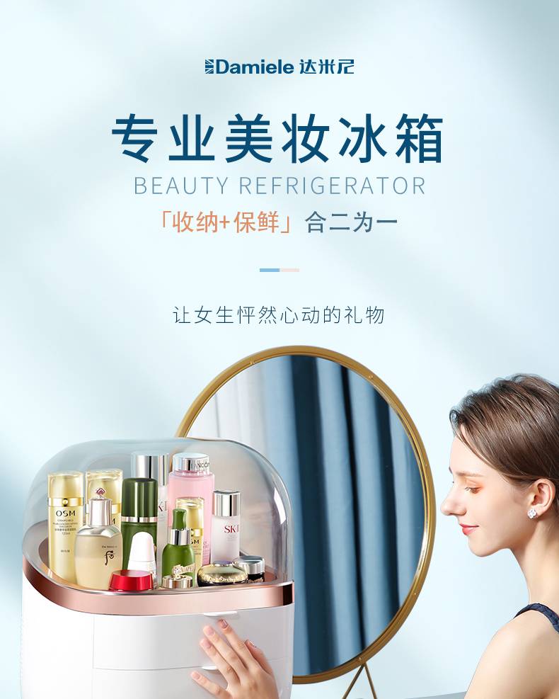 达米尼小冰箱美妆冰箱迷你化妆品冰箱家用护肤品收纳面膜保鲜口红香水冷藏茶色款