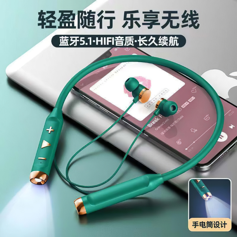爱特瑞耳 智能运动蓝牙耳机K27绿色 外出跑步看剧神器 高保真 低延迟 磁吸式 手电照明超强续航