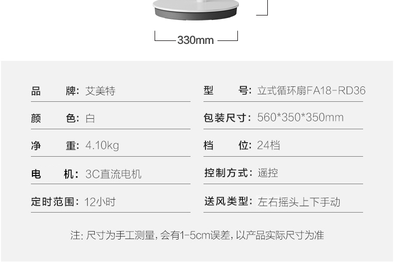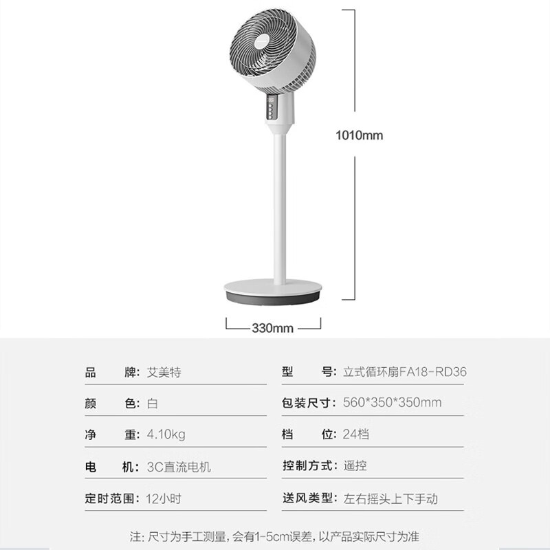 【全国包邮】 艾美特 落地扇 FA18-RD36落地扇家用节能省电定时摆头大风力五叶电风扇 高颜值夏季必备家用好物