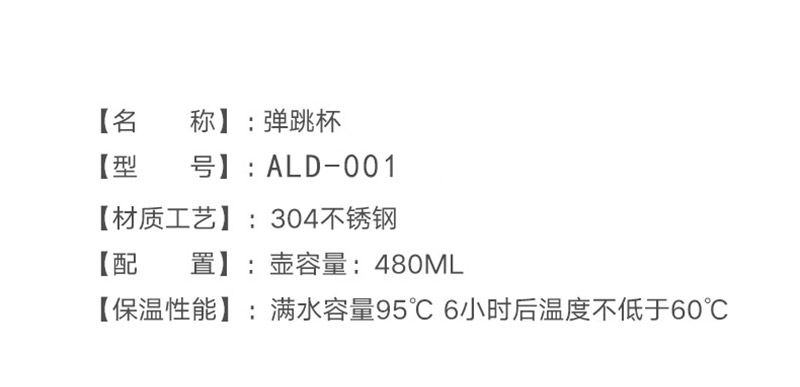 艾蓝德 弹跳保温杯304不锈钢水杯 弹跳杯 500ML ALD-001
