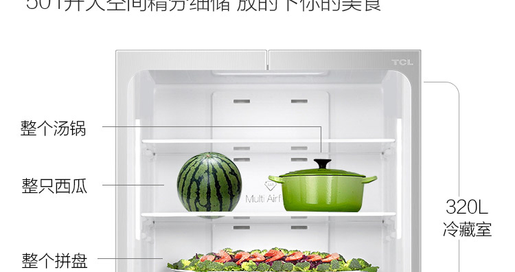 TCL 501升 双变频二级能效 十对开门冰箱 风冷无霜 电脑温控典雅银 BCD-501CWP 【西藏不发货】