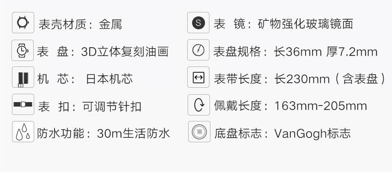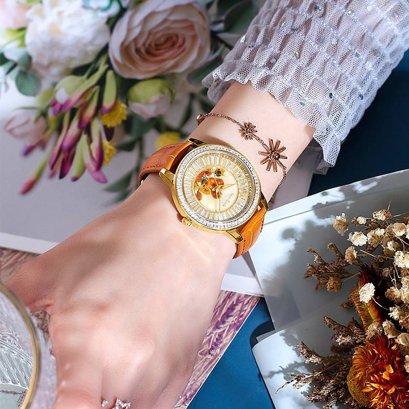 梵高(VanGogh)瑞士女士石英手表-向日葵R-GLLG-13金色