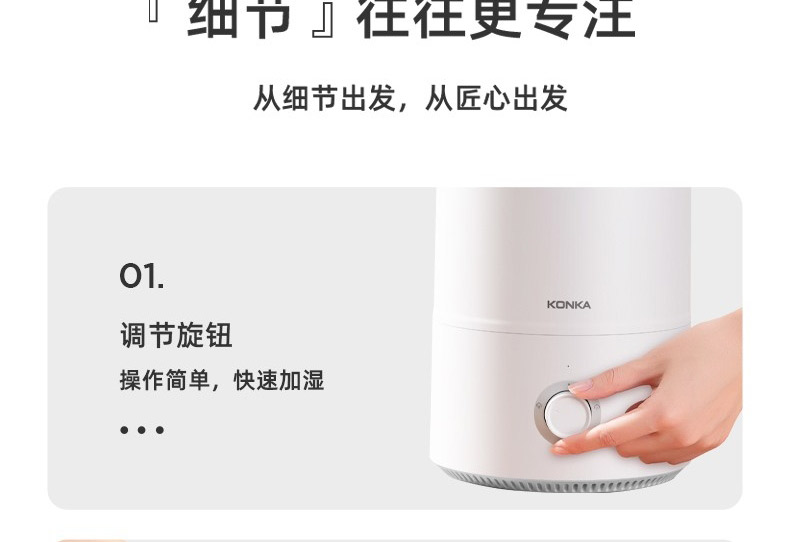 康佳空气加湿器 家用卧室办公 4.5L大容量雾量 孕妇婴儿净化空气喷雾 白色 KJSQ-3225-T