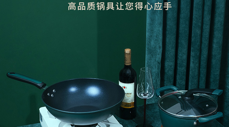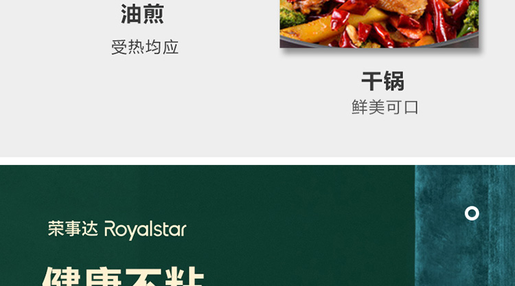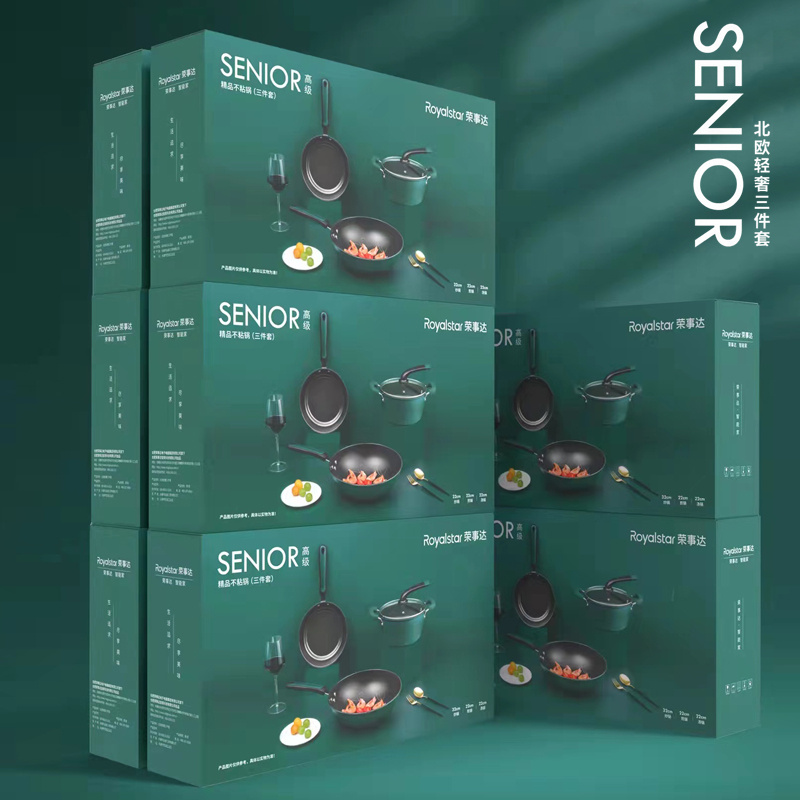 荣事达 Royalstar北欧轻奢三件套炒锅烹饪锅具家用不粘锅套装 30cm+22cm+22cm