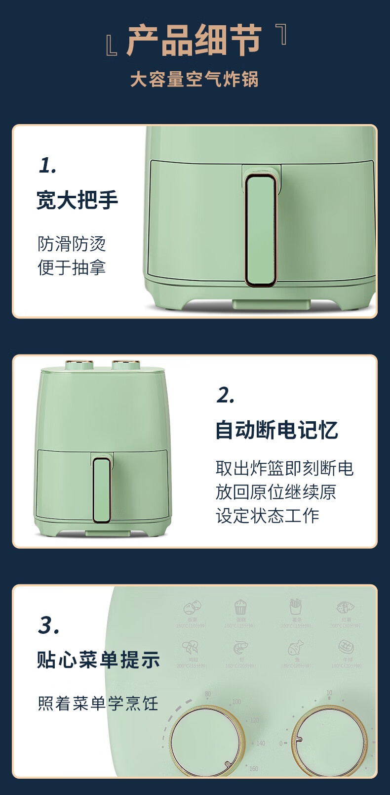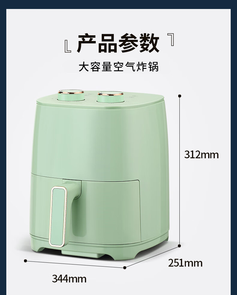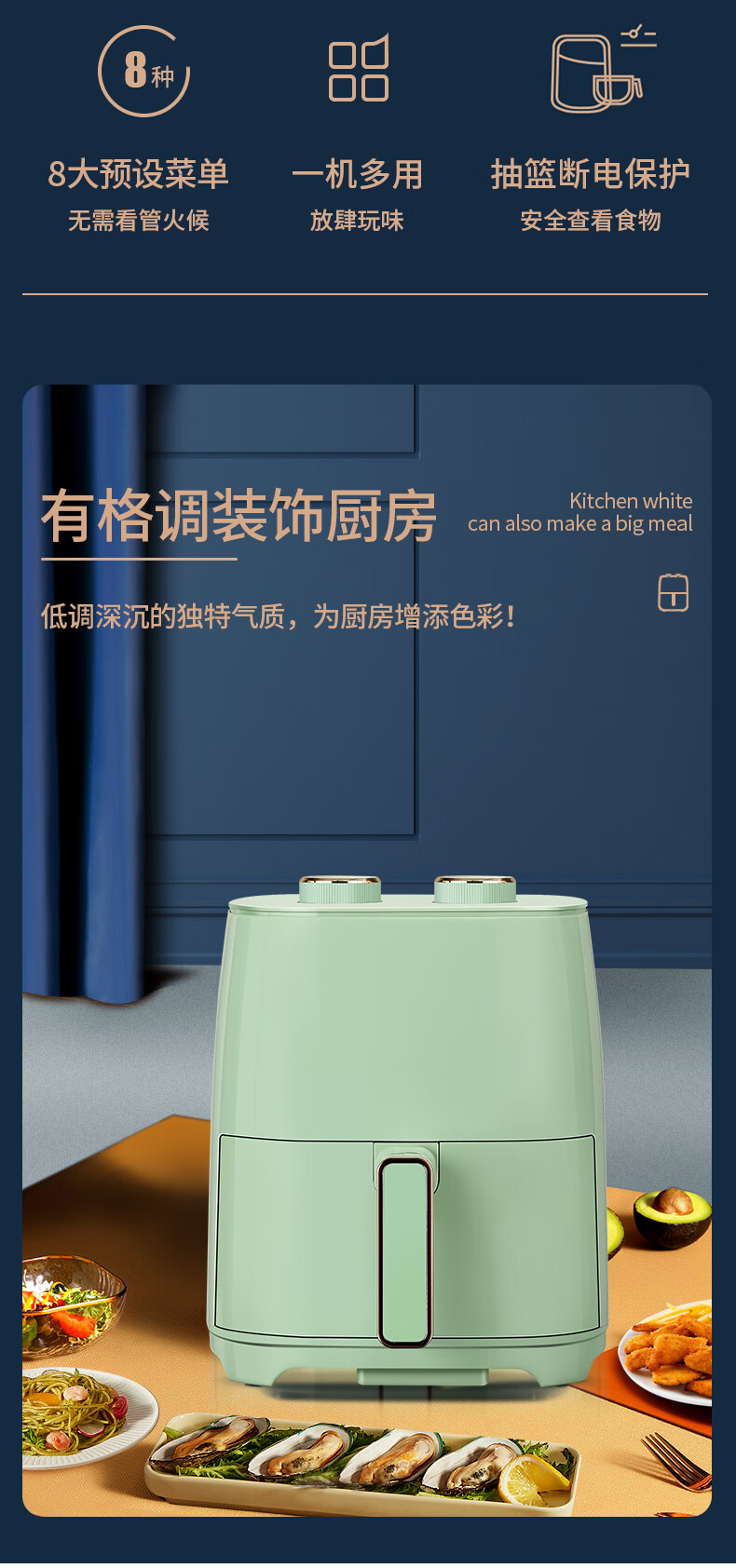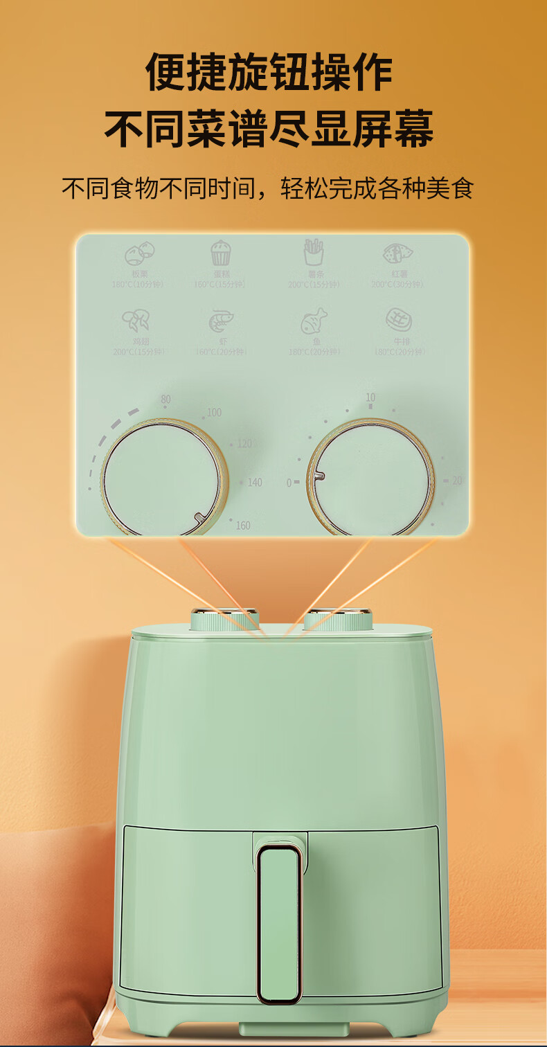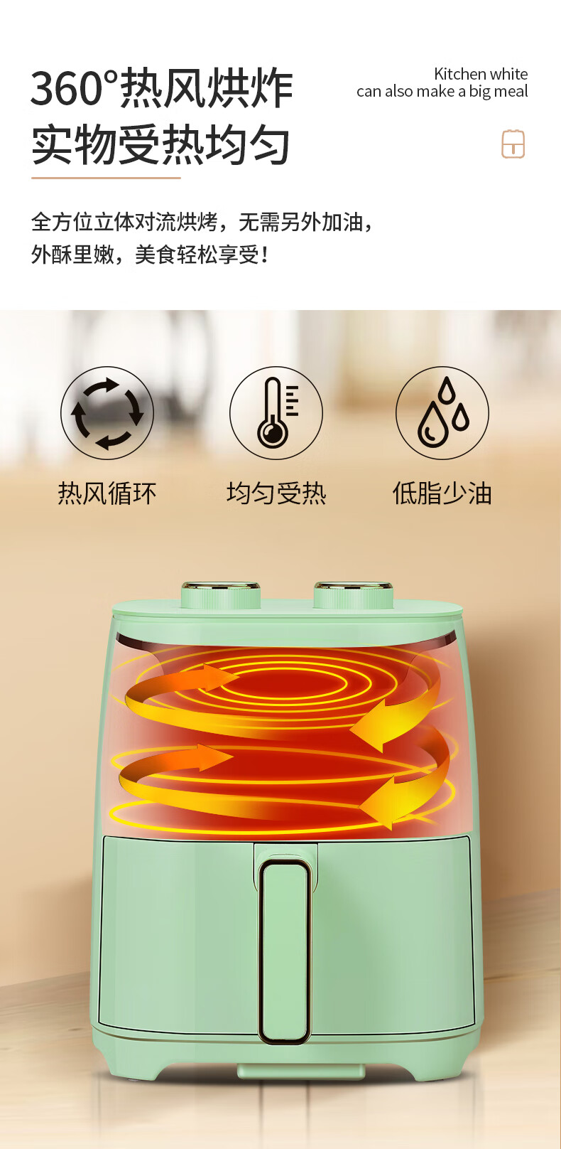 米力空气炸锅家用多功能无油蒸汽全自动 绿色HD-ZG019MC【新疆西藏/海南/青海不发货】