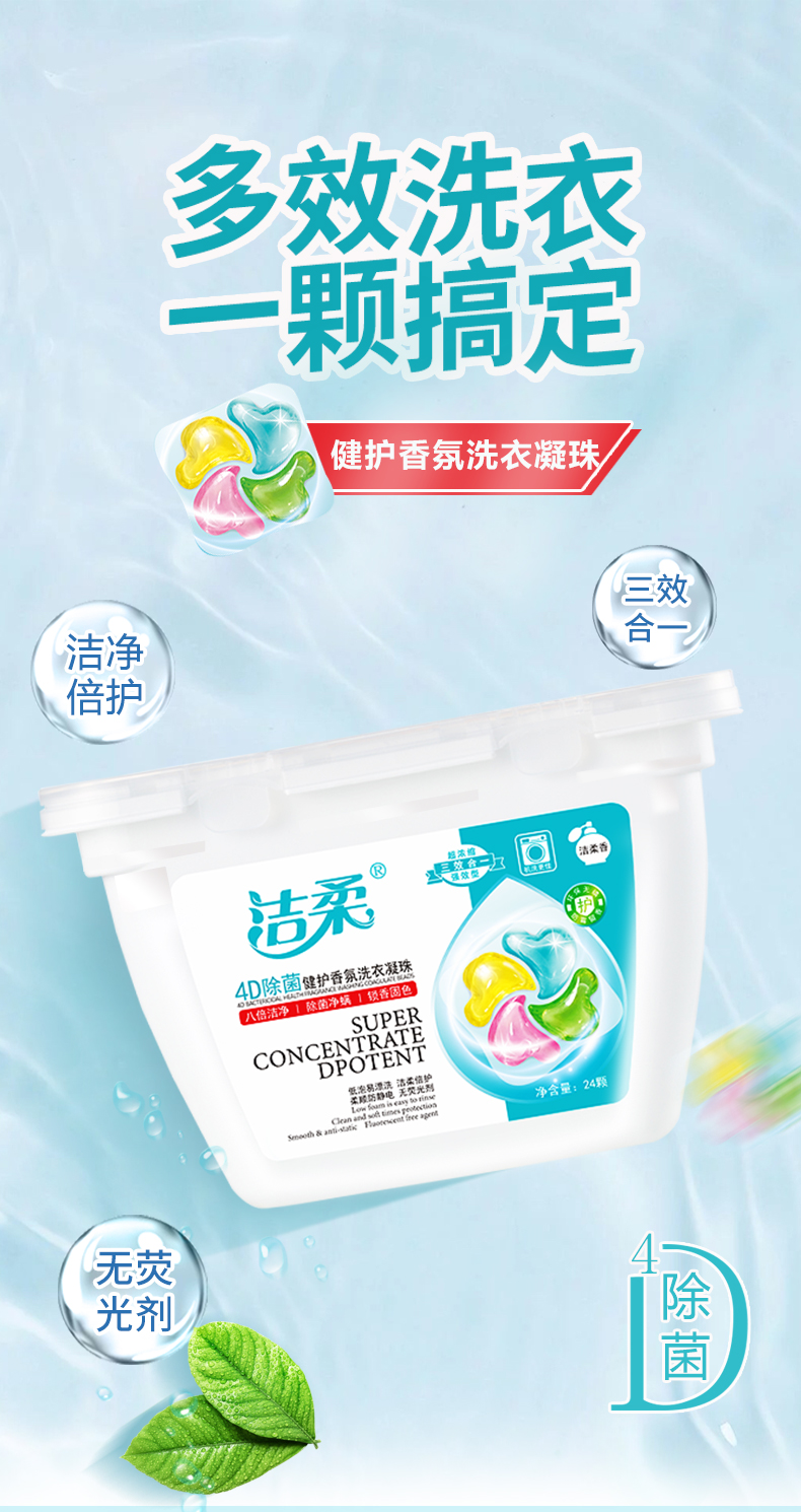 洁柔4D除菌健护香氛超浓缩三效合一强效型洗衣凝珠抑菌除螨柔顺低泡易漂洗香氛洗衣凝珠12g/24颗/盒