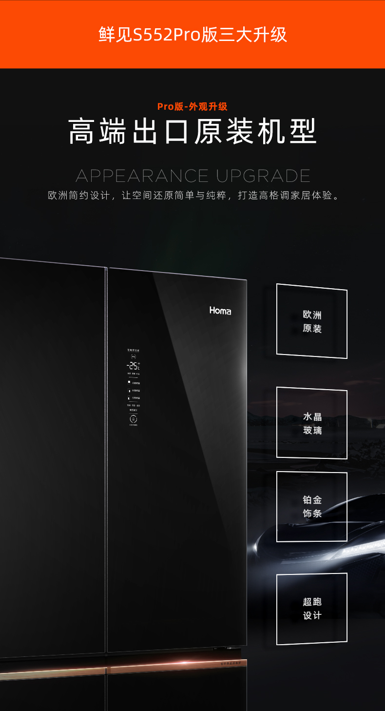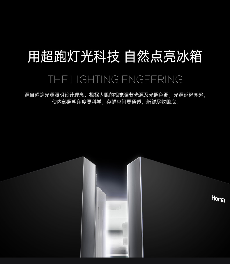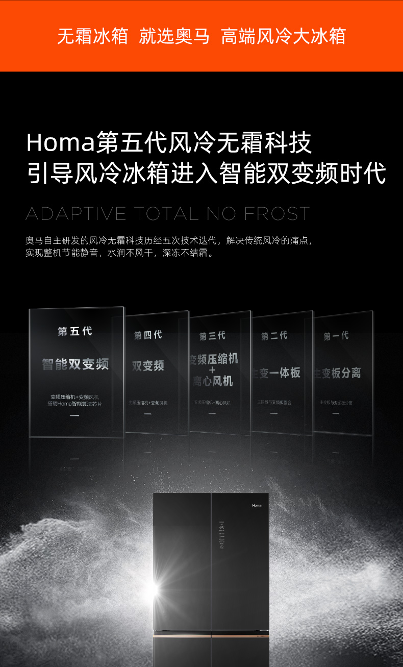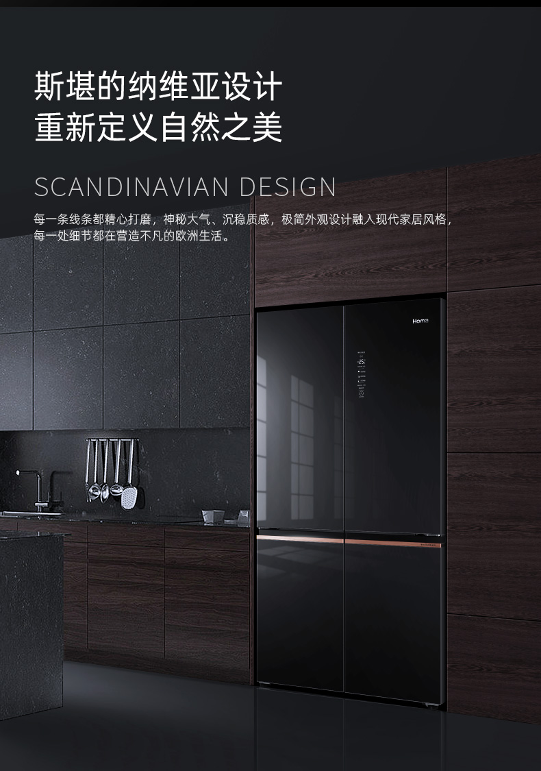 包邮Homa奥马552升大容量十字对开门冰箱 一级智能双变频 AI语音物联 玻璃面板 秘镜 BCD-552Pro