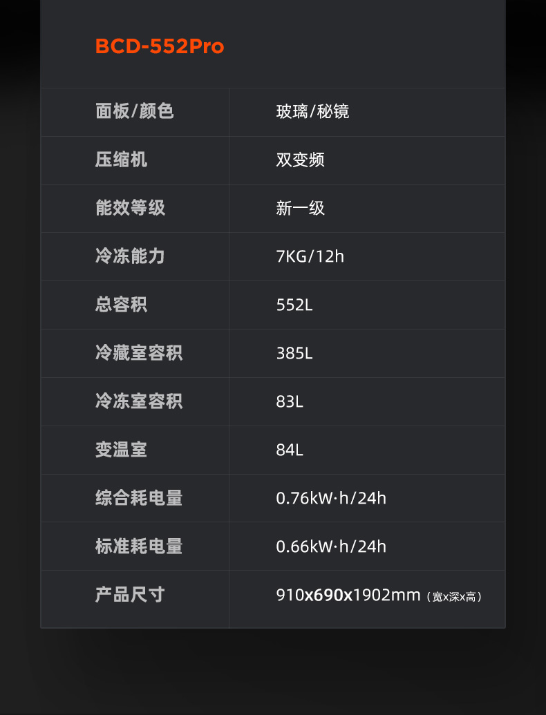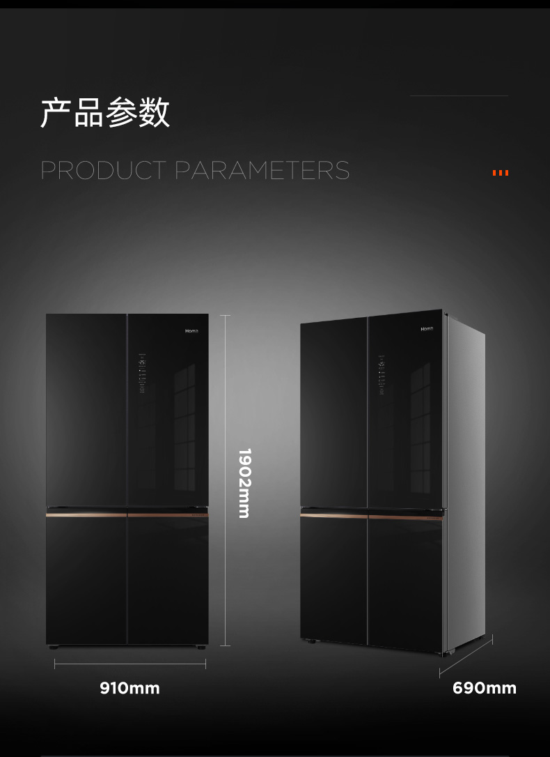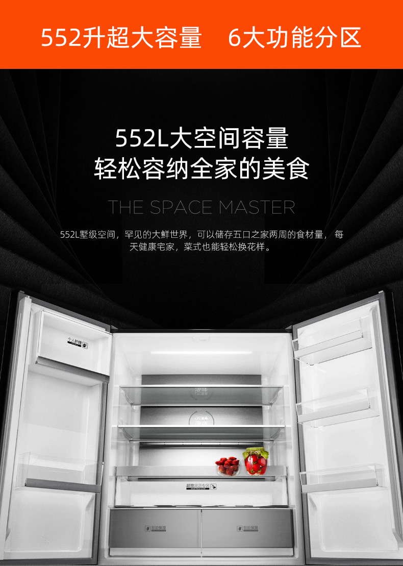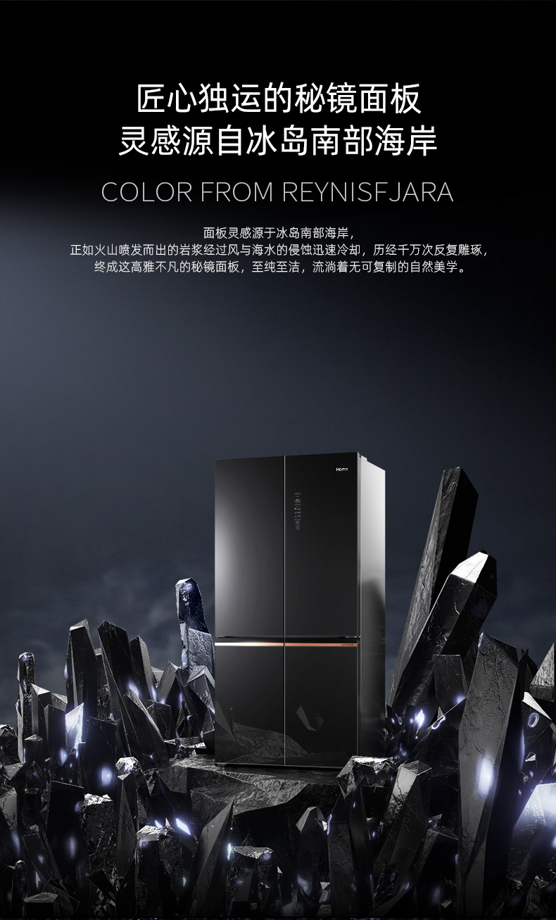 包邮Homa奥马552升大容量十字对开门冰箱 一级智能双变频 AI语音物联 玻璃面板 秘镜 BCD-552Pro