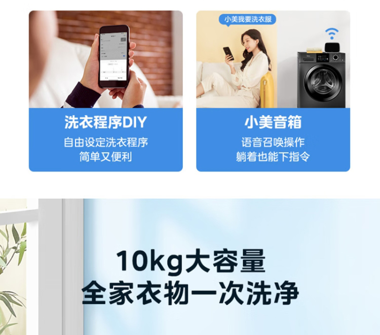 美的Midea 滚筒洗衣机巴氏除菌洗 健康除螨羊毛羽绒服洗 10公斤大容量变频 智能家电高温筒自洁 WiFi智控款 MG100CG2023T 送货上