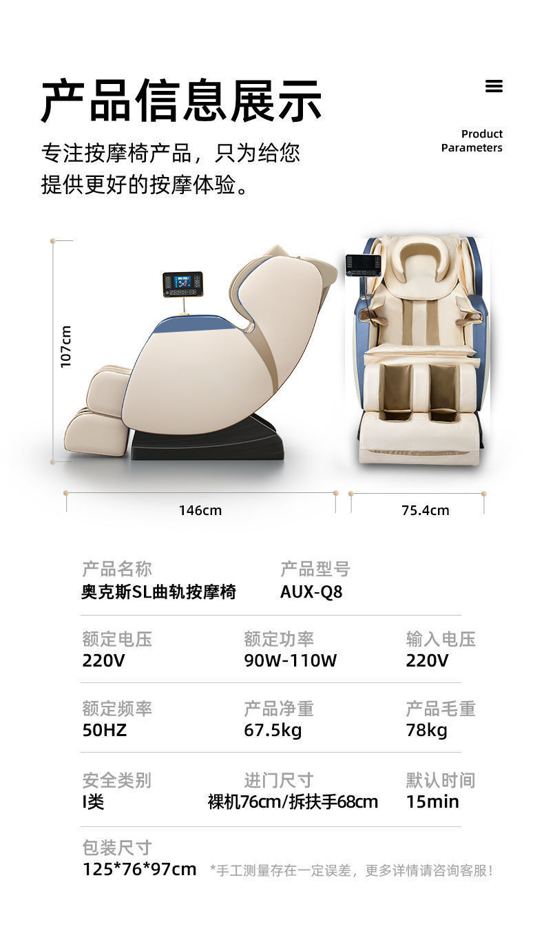 奥克斯135CMSL导轨按摩椅 AUX-Q8 【西藏不发货】