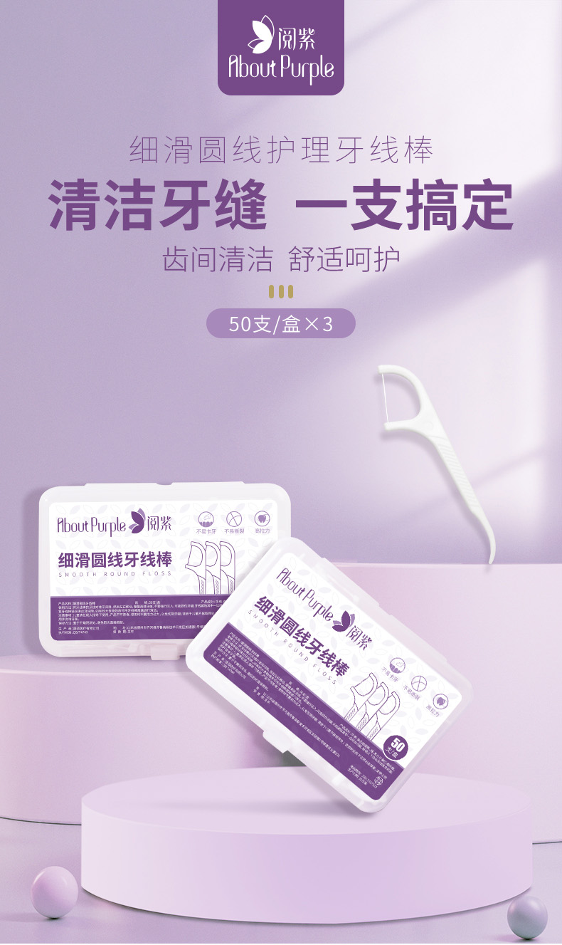 包邮 阅紫 细滑圆线牙线棒 清洁齿缝牙线棒 独立便携包装 50只/盒*6盒