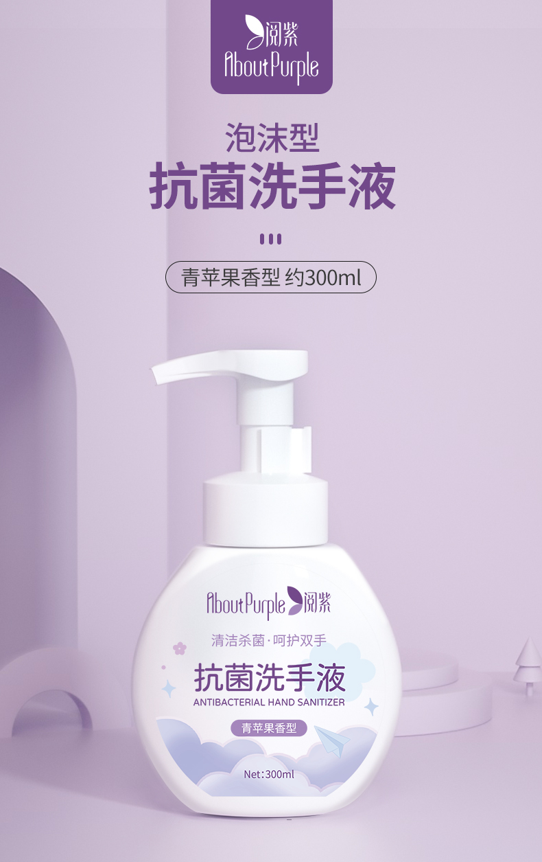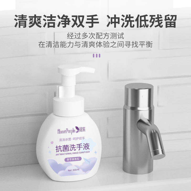 包邮 阅紫 儿童抗菌泡沫洗手液 家用清洁抗菌洗手液 青苹果香型 家庭装 300ml*3瓶