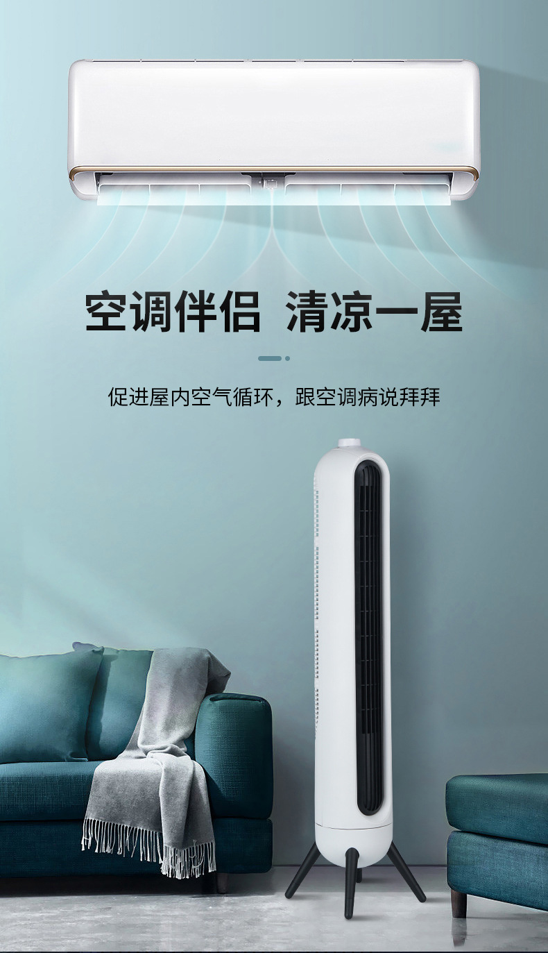 小俧同学塔扇 无叶风扇 电风扇 夏季家用落地扇 FT75-YG04(绿色)