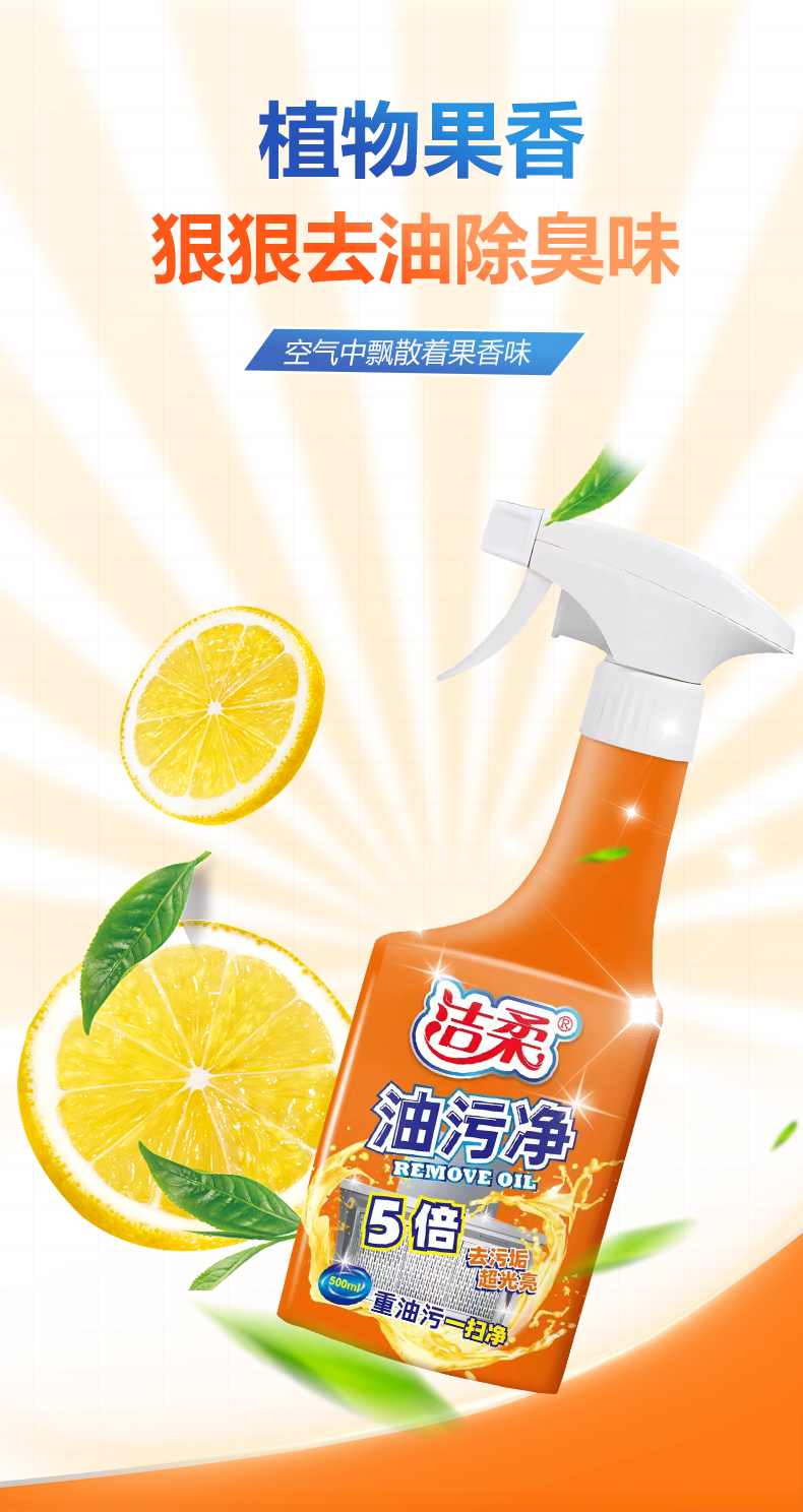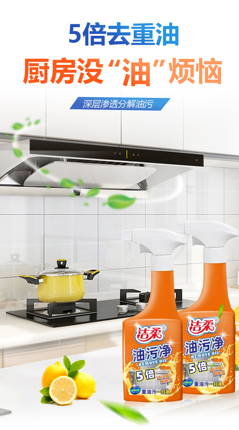 洁柔5倍去污垢超光亮油污净厨房去重油油污净柠檬香味油污清洁剂喷雾500ml/瓶