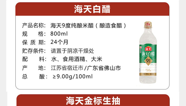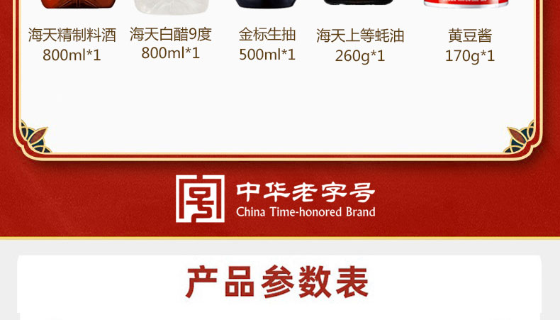 海天缤纷美味调味组合套装2530款(中华老字号)【料酒+白醋+生抽+耗油+黄豆酱】