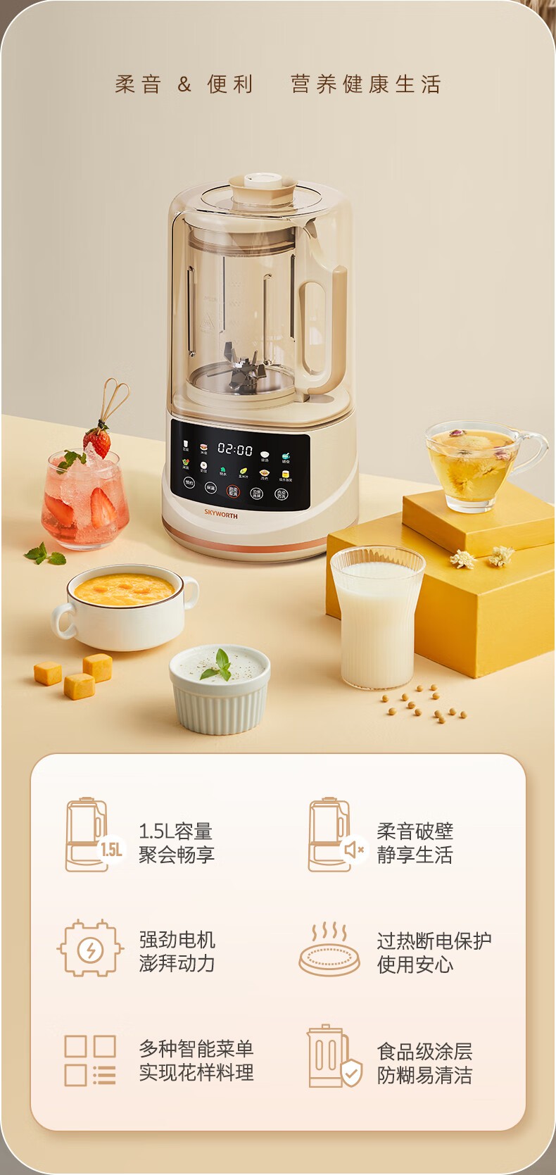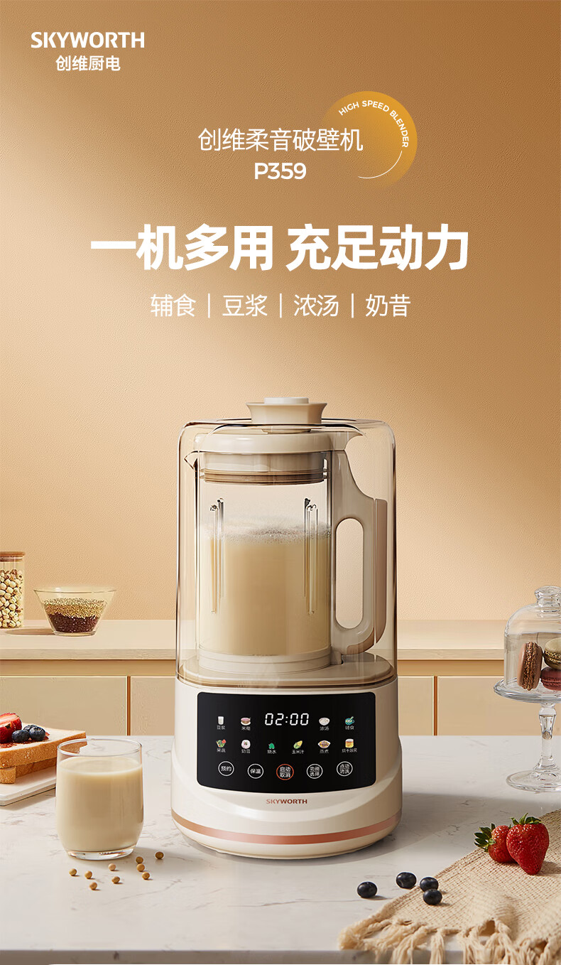 创维轻音破壁机 家用豆浆机 全自动多功能榨汁机 带隔音罩 低噪音料理机 P359