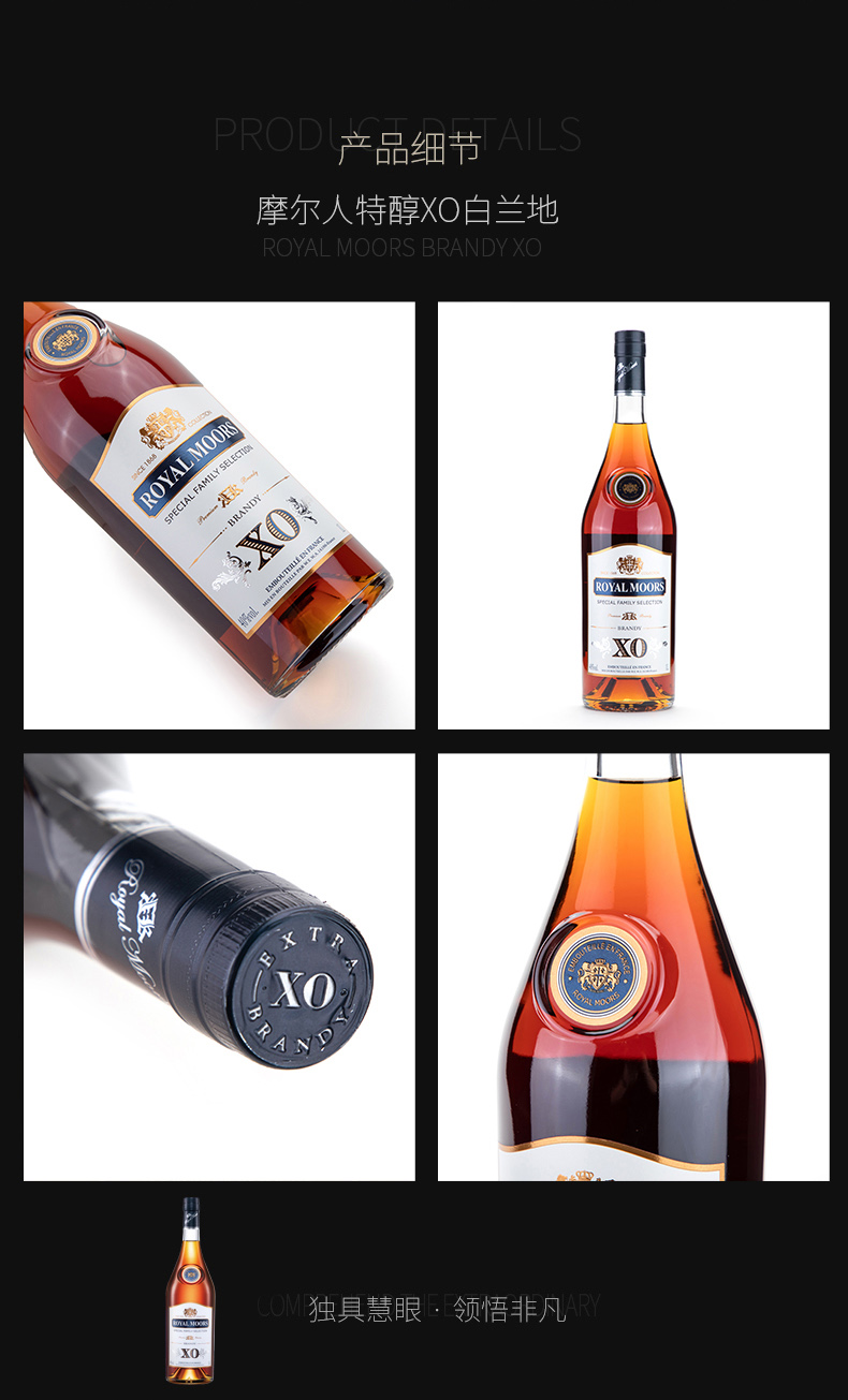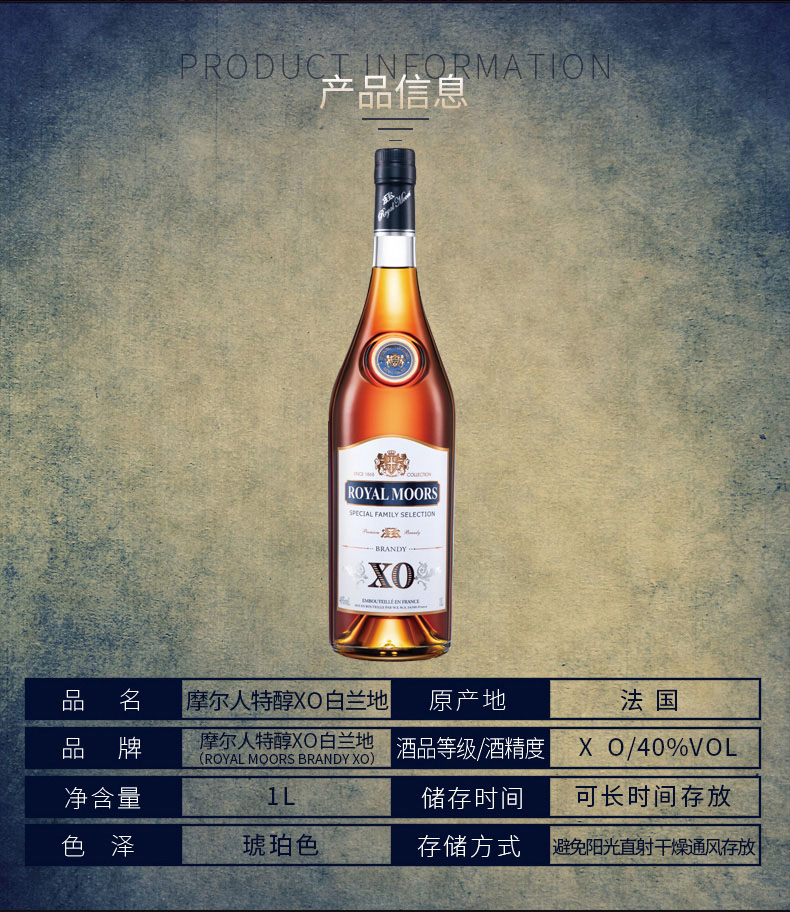 包邮-摩尔人 特醇XO白兰地1000ml 橡木桶陈酿 法国原瓶进口洋酒【新疆/西藏不发货】