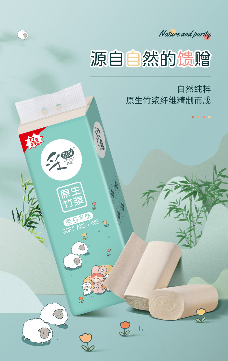 采琪采迷你便携小卷纸 竹浆本色 柔软绵绵糖卷纸卫生纸 12卷1提 QBJ026A01A 包邮