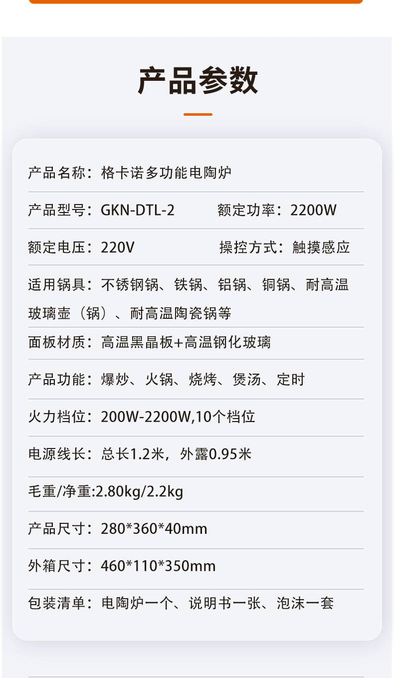 格卡诺电陶炉家用2200W大功率电磁炉火锅炉GKN-DTL-2