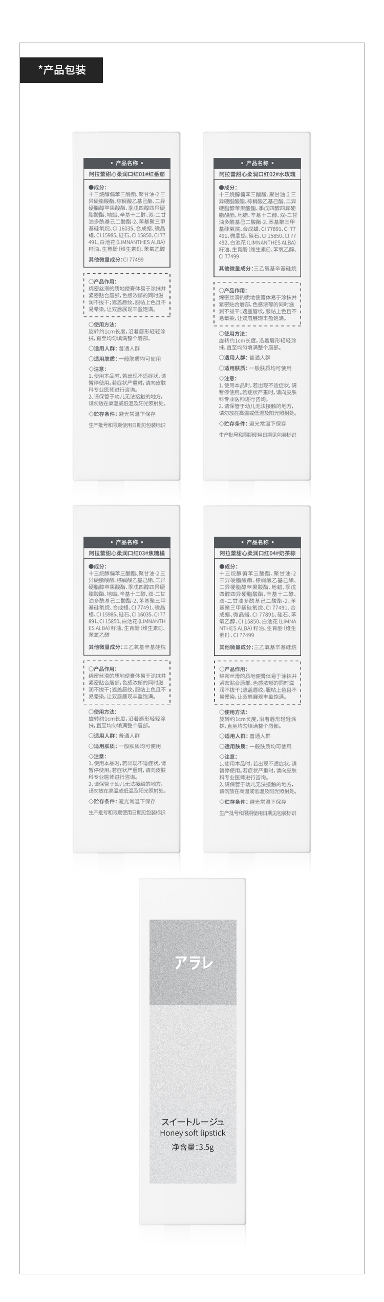 阿拉蕾 甜心柔润口红 3.5g 四个色号可选