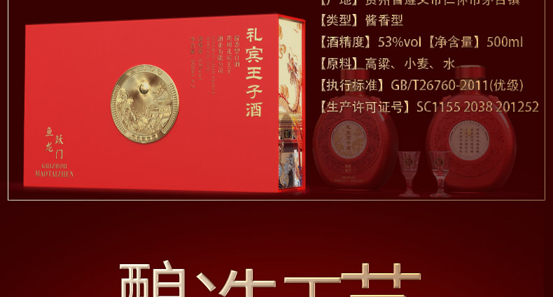包邮-整箱装礼宾王子酒鱼跃龙门整箱装 酱香型白酒 佳酿好酒 500ml*2*3