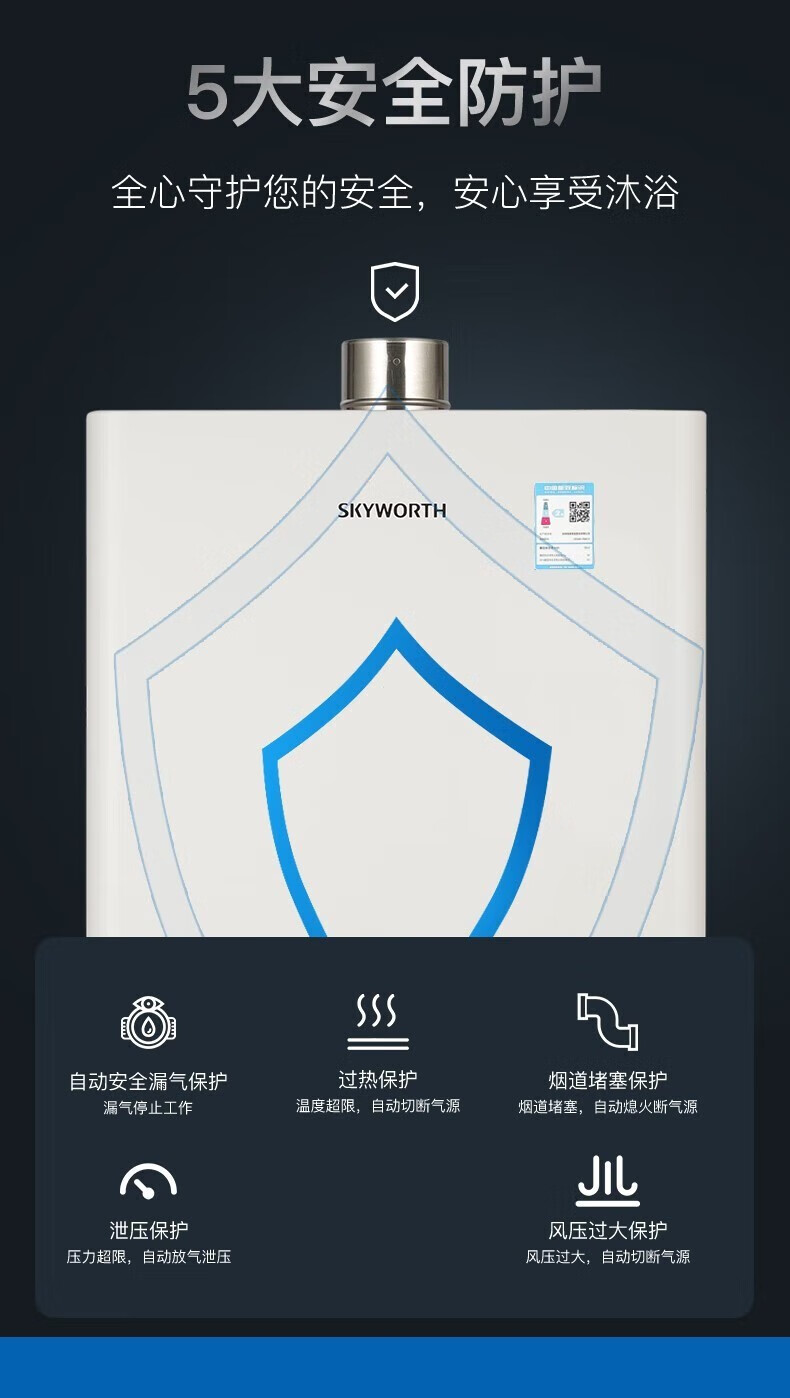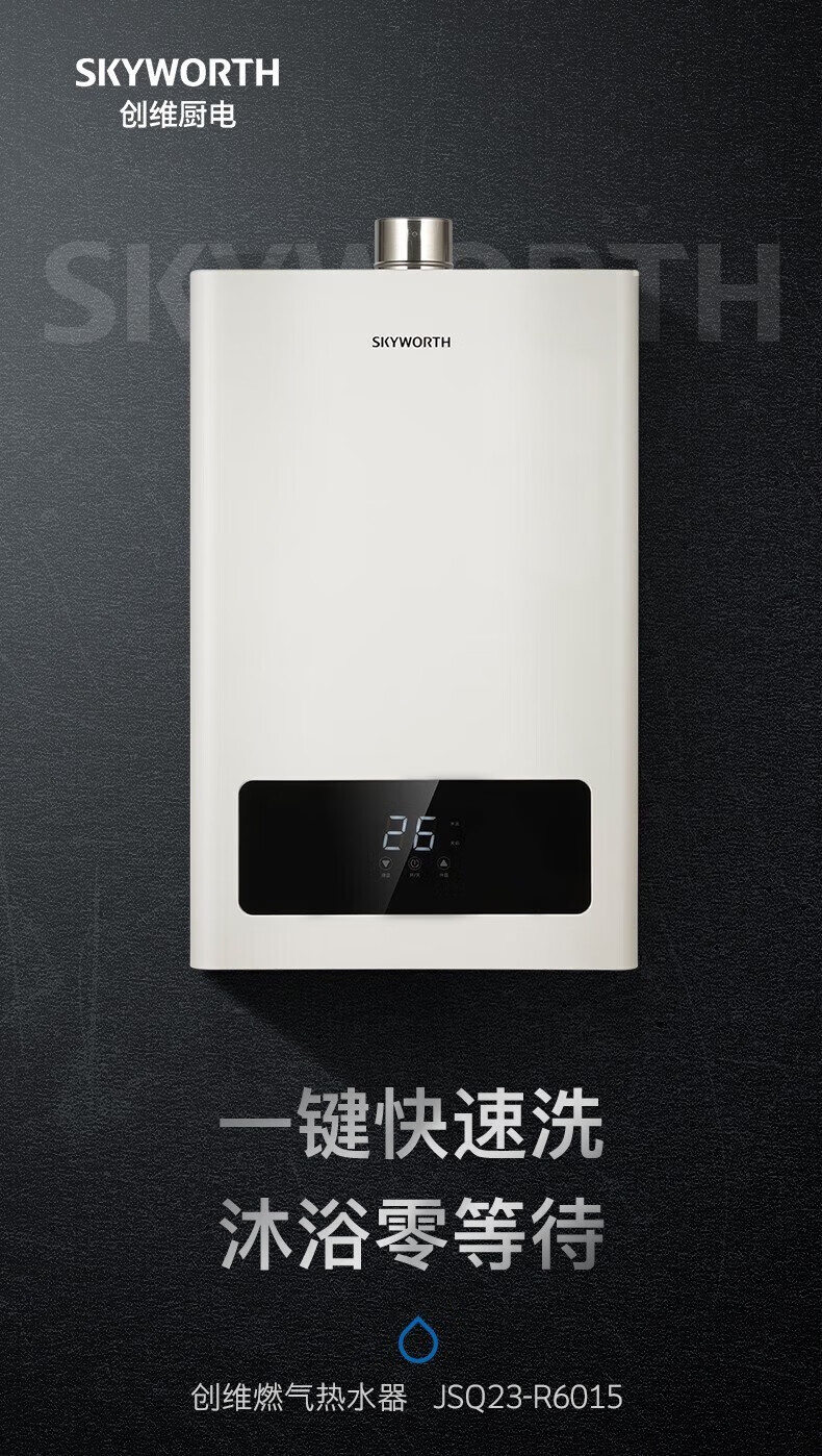 【随机发京东顺丰德邦快递】创维高端厨卫电器低水压启动燃气热水器12L防倒风智能恒温大水量即热速热燃气热水器JSQ23-R6015