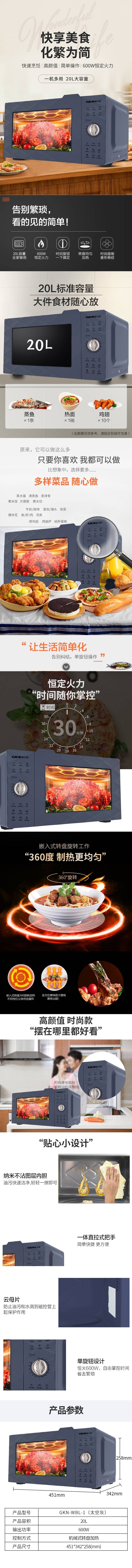 格卡诺20L微波炉大容量360转盘加热家用微波炉