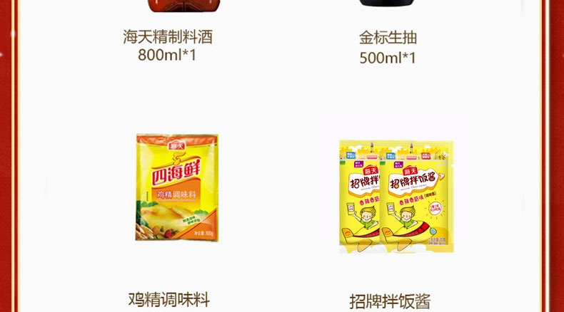 海天四季平安调味组合套装1440款(中华老字号)【拌饭酱*2+料酒+生抽+鸡精】