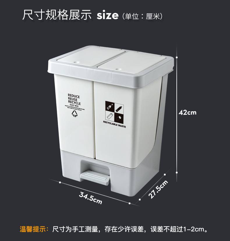 Mabalo/麦宝隆分类垃圾桶家用客厅创意厨房专用大号脚踏带盖干湿分离厨余拉圾筒 1224