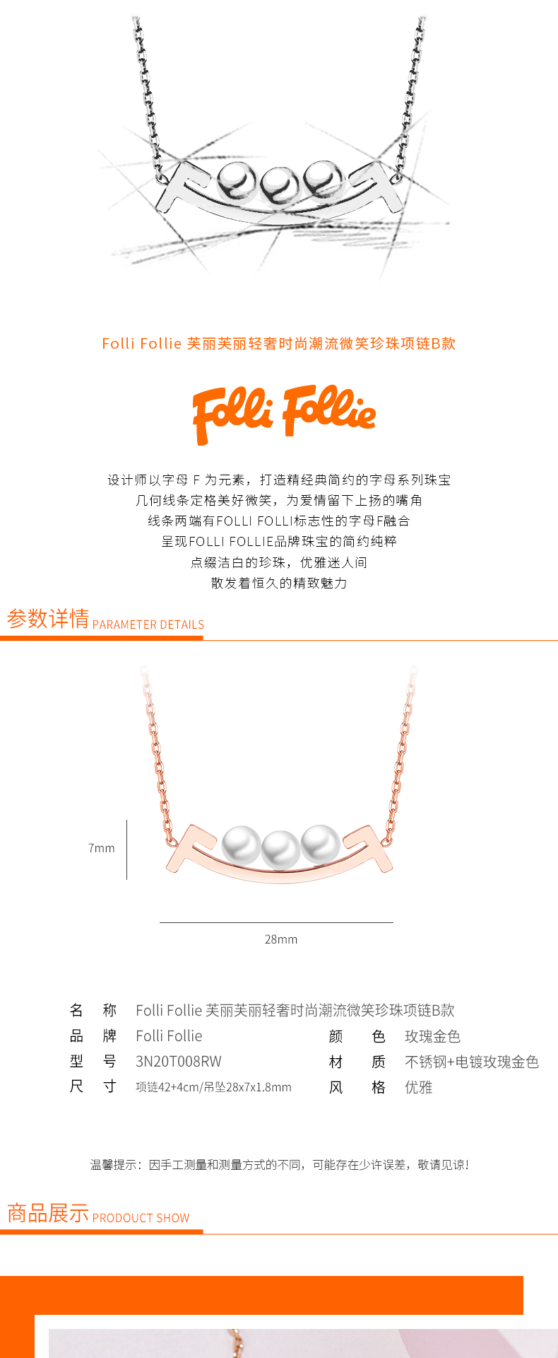 Folli Follie芙丽芙丽轻奢时尚潮流甜美桃花项链3N20T008RW 微笑珍珠项链B款 情人节母亲节520送礼礼盒