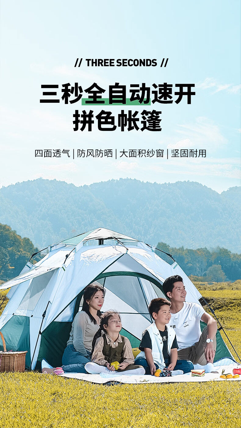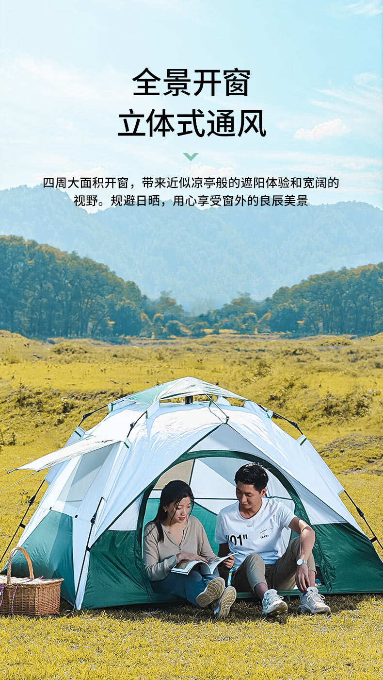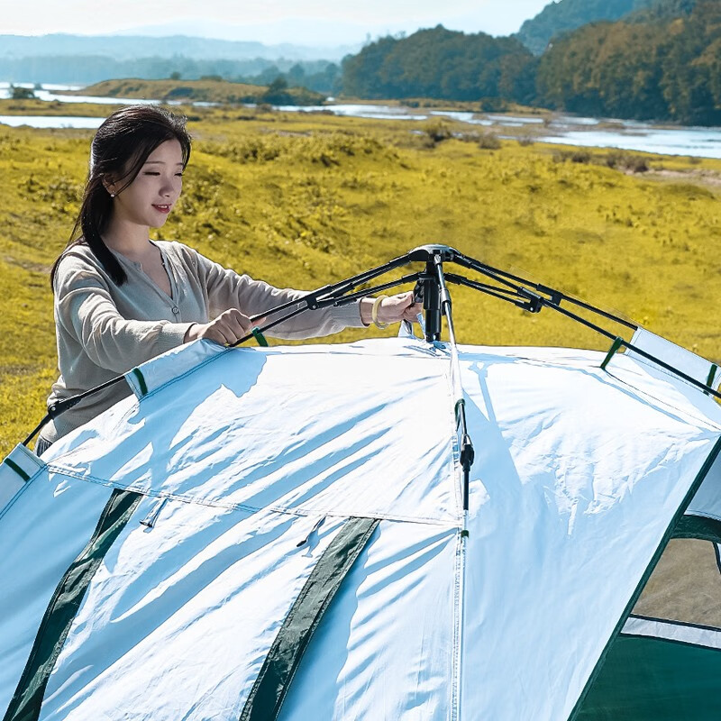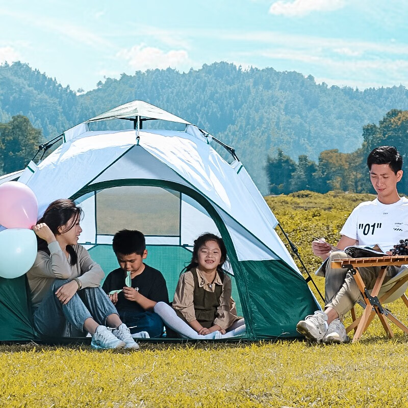 狼行者 全自动户外帐篷 防水双人免搭建 3-4人野外露营帐篷 绿拼白 型号:LXZ-1103