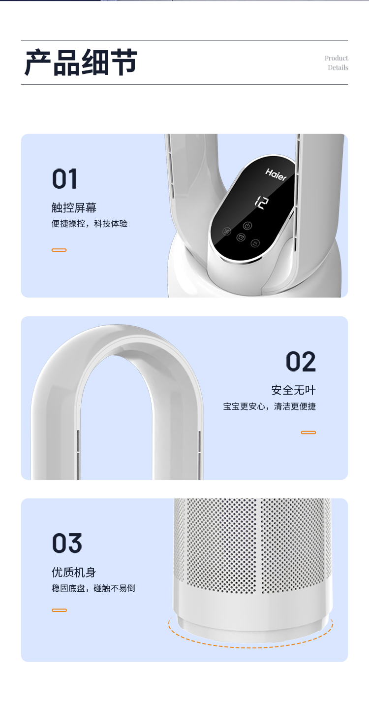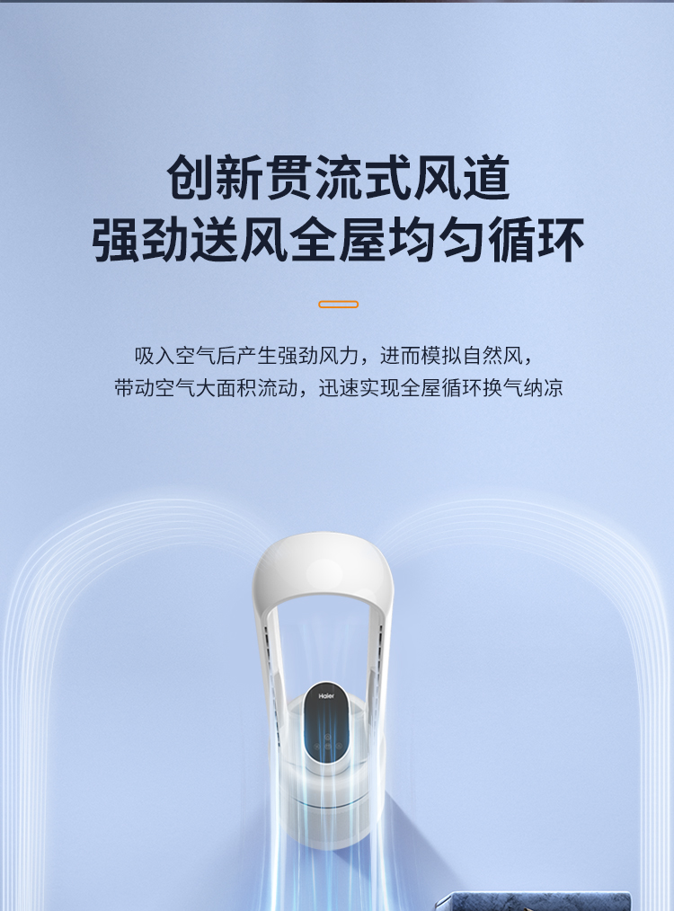 海尔 Haier 无叶风扇家用办公室空气循环扇直流变频落地扇风扇塔扇立式电风扇 HFW-J09