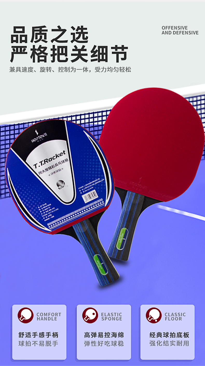 何大屋/Hodtown 精彩兵乓球拍2支装套装 横板长柄单双面反胶皮套 健身运动学生业余训练HDW1720