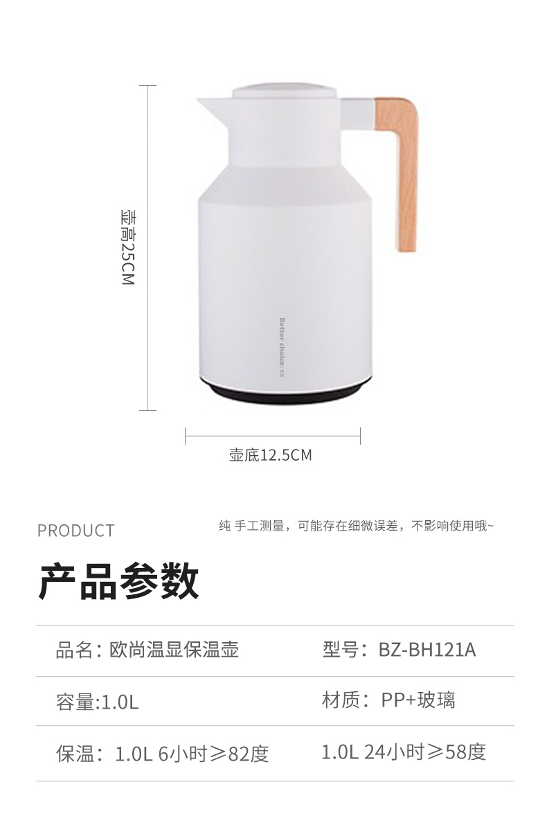 佰造 欧尚温度显示保温壶 水壶 暖瓶 BZ-BH121A 白色