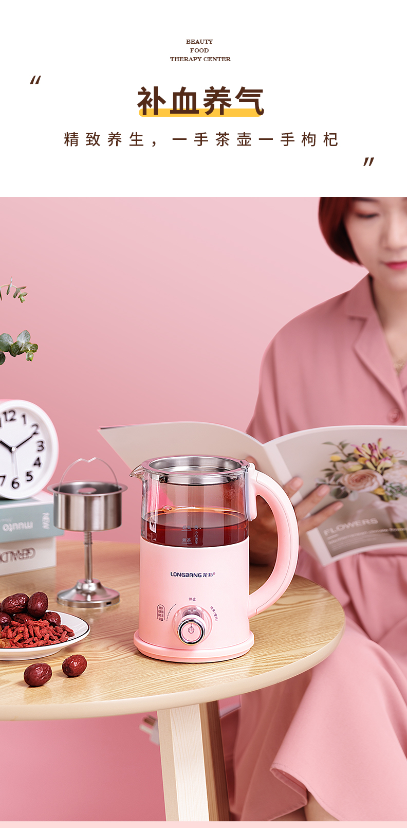 龙邦LONGBANG 喷淋式黑茶煮茶器蒸汽式煮茶壶养生壶玻璃蒸茶器壶 喷淋款 LB-851H