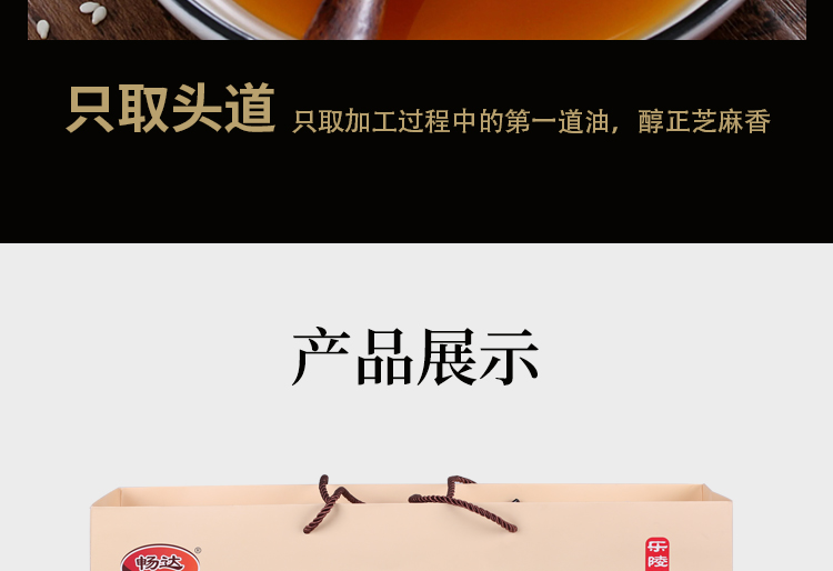 畅达 芝麻香油 醇香头道石磨香油 纯石磨工艺 凉拌调味火锅蘸料 礼盒装