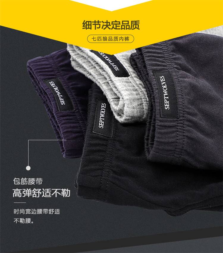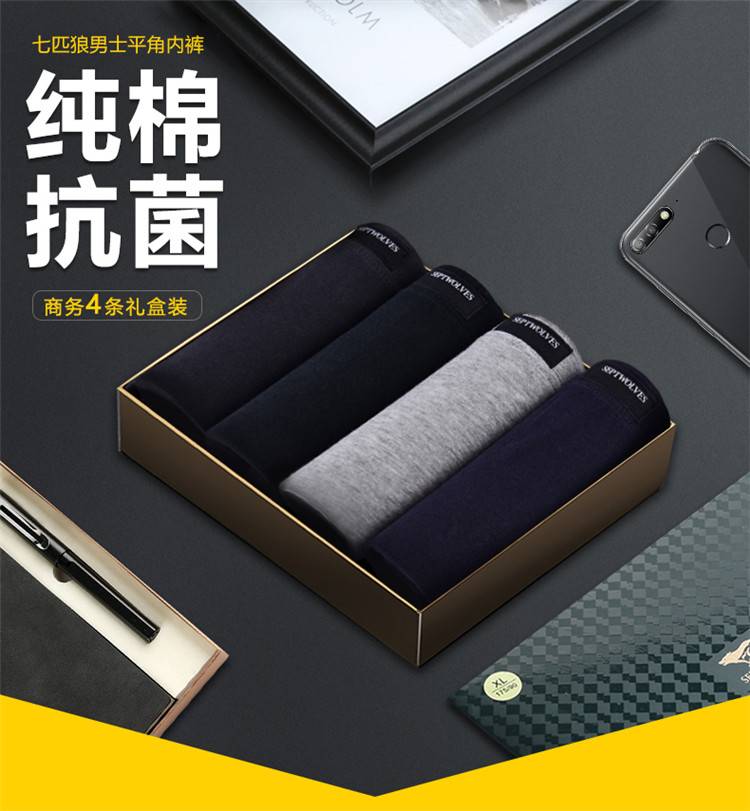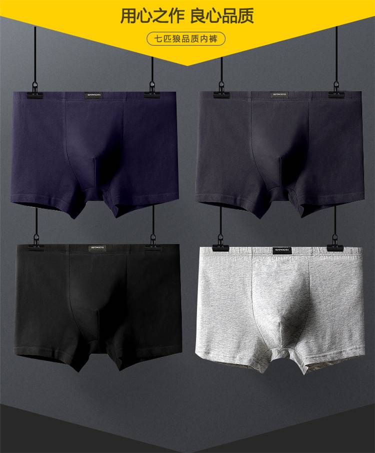 七匹狼男士抗菌纯棉平角内裤96318 中腰舒适透气 4条装