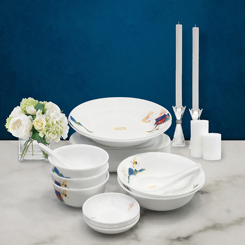 康宁冰萃玲珑 盛世鸣和系列 餐具13件套 耐高温玻璃碗碟盘套装