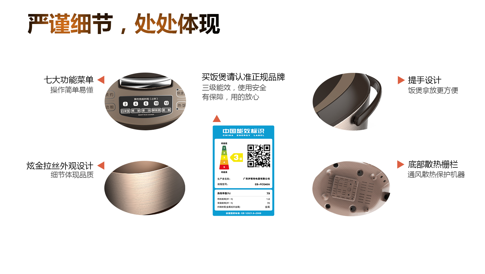 enaiter/伊莱特时尚乐享12小时智能预约陶晶内胆电饭煲4L EB-FCQ48A