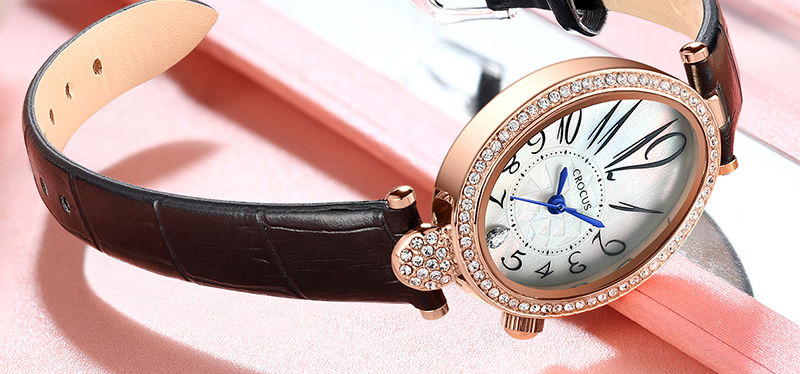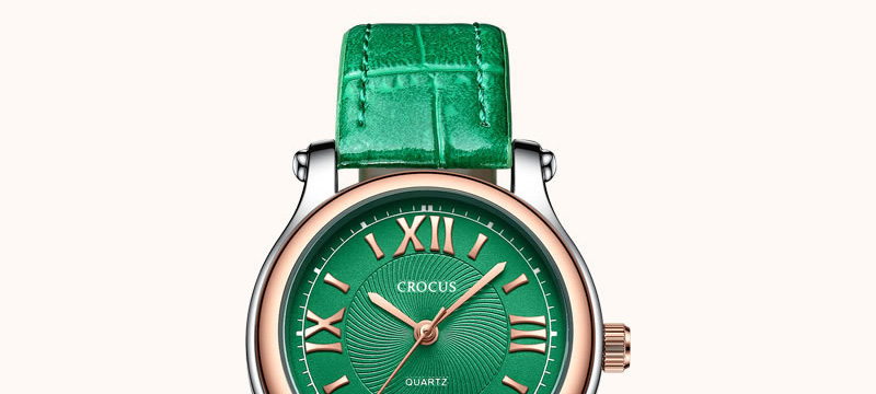 CROCUS BY GK BECK拼色表壳随心转3ATM防水优雅皮革表带女士手表【多种款式选择】