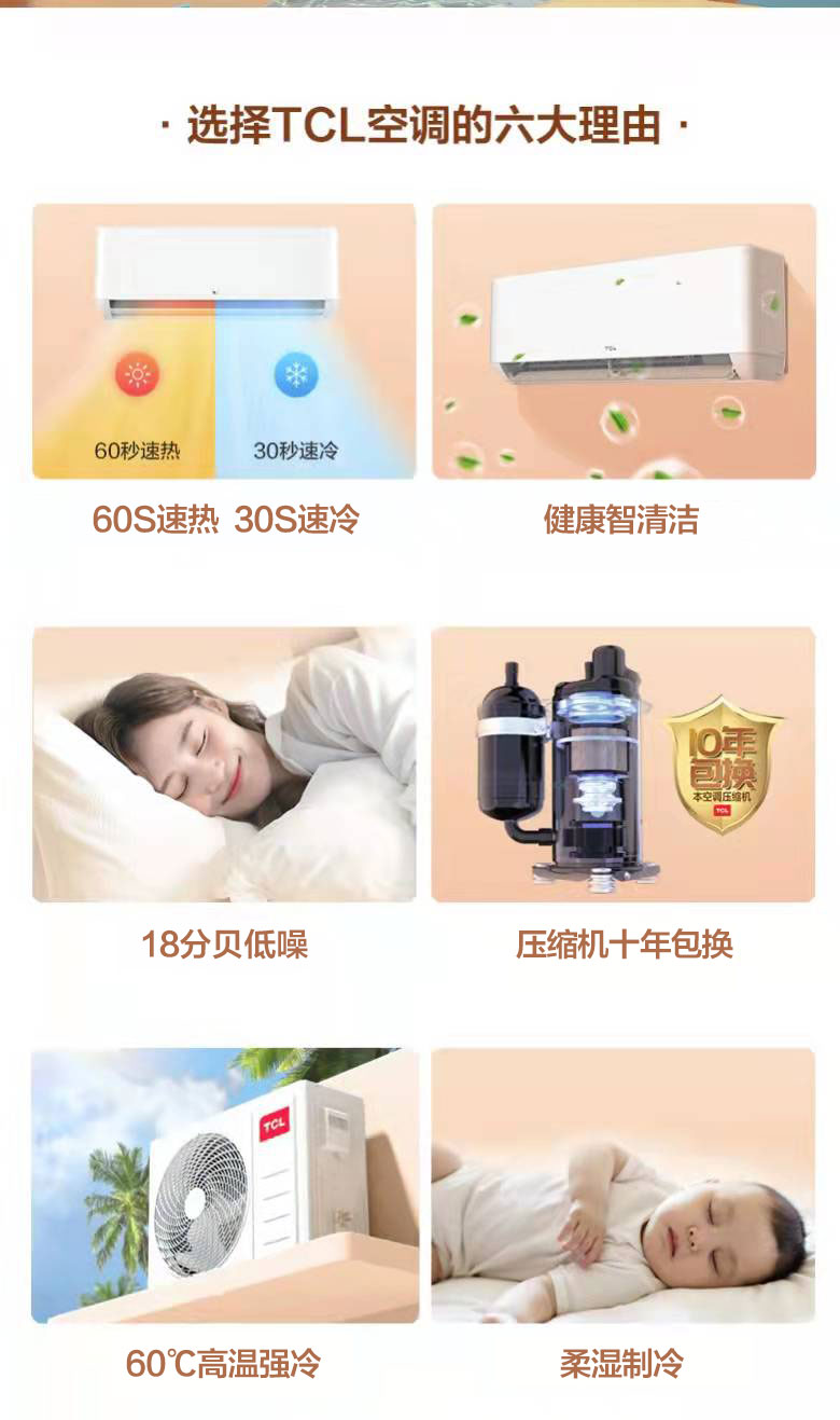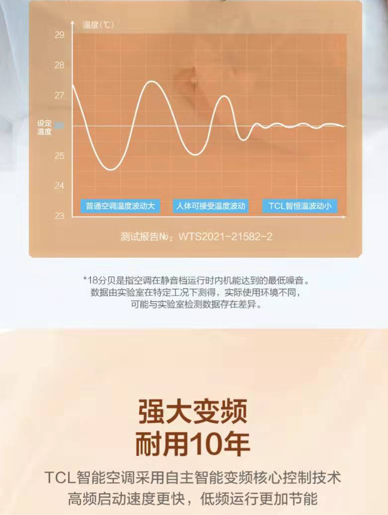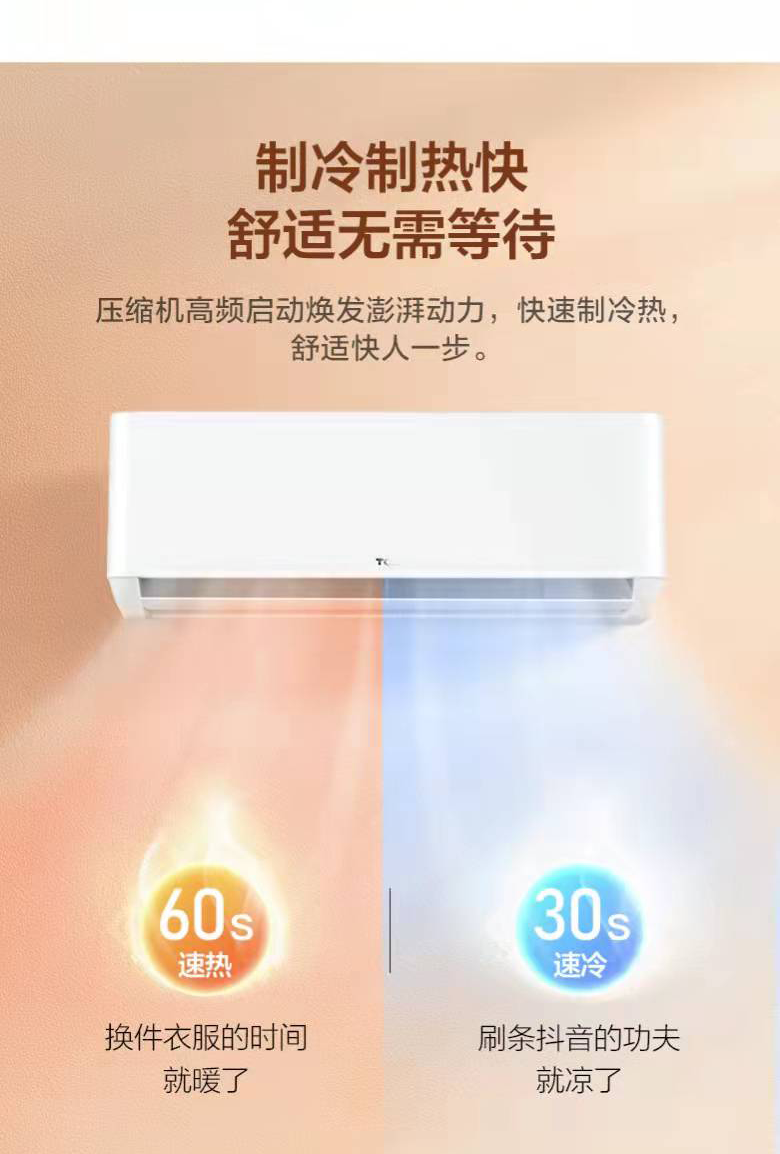 包邮 J-TCL 1.5匹 一级能效 变频冷暖 壁挂式空调 KFR-35GW/AD1a+B1 送货上楼