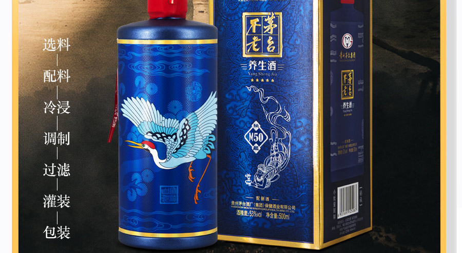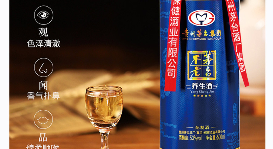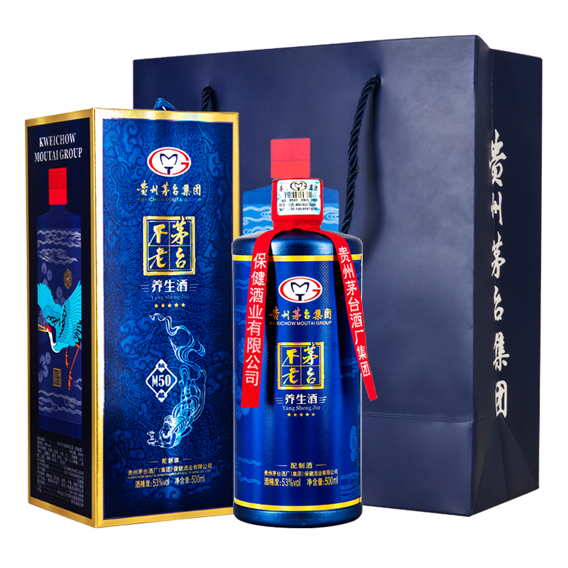 包邮-茅台家族 茅台不老养生酒-秘藏(蓝)53° 500ml*1瓶【下单两瓶带一个手提袋】