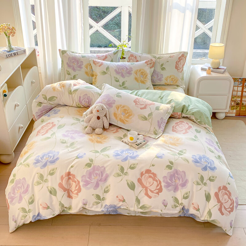天琴家纺 邂逅花开时韵贵妃绒四件套 双人套件加厚款(邂逅花开TQ-T101/岁月静好TQ-T115)下单请备注所需颜色款式