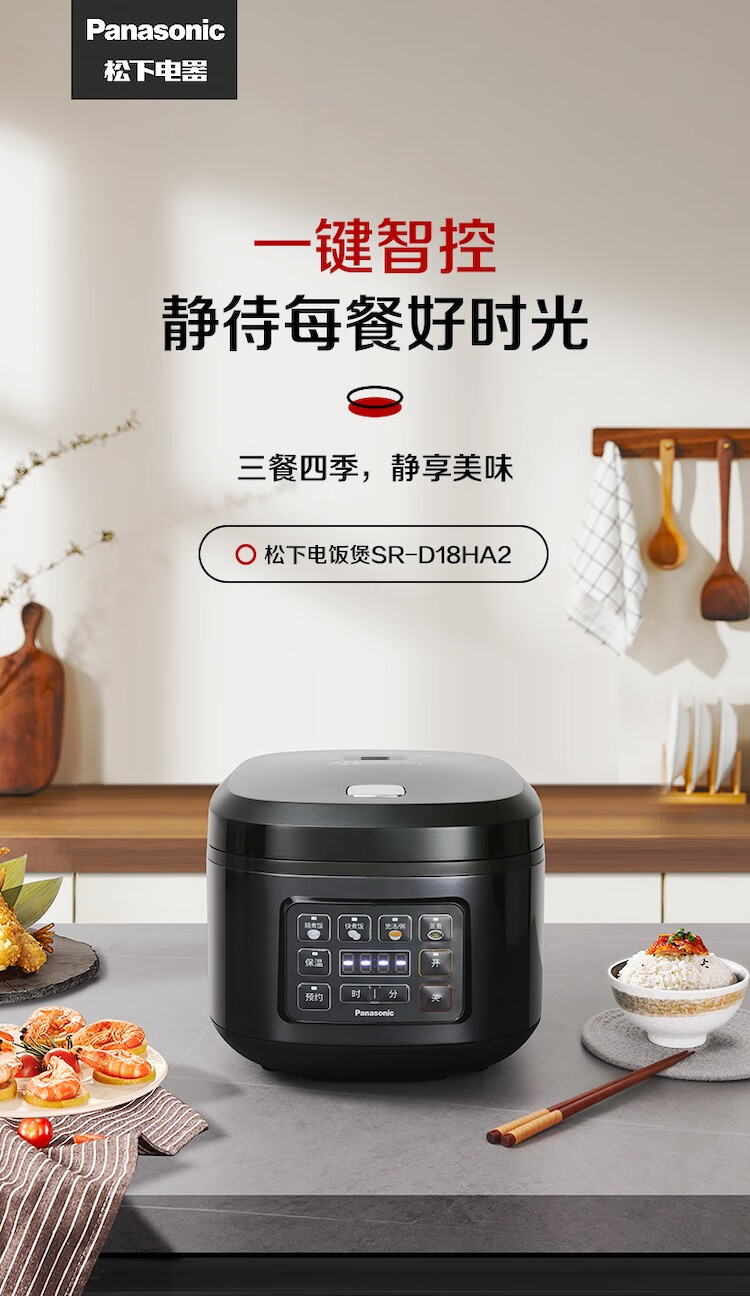包邮-J-松下/Panasonic 家用智能多功能电饭煲 备长炭内胆 24H智能预约 4.8L大容量适合1-8人 型号:SR-D18HA2