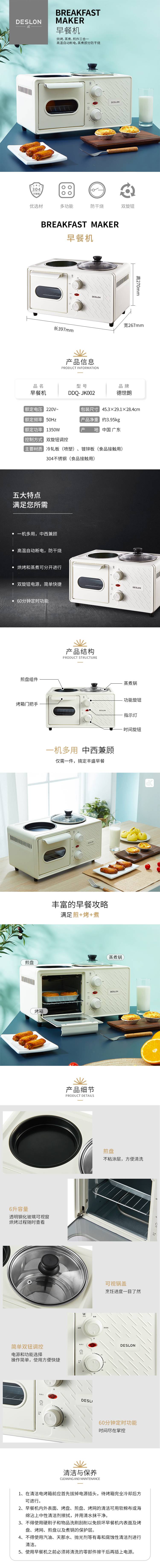 德世朗 多功能早餐机料理机电烤箱 烘烤、蒸煮、煎炸三合一 智能定时 DDQ-JK002