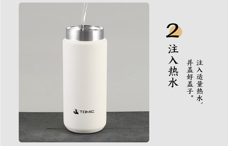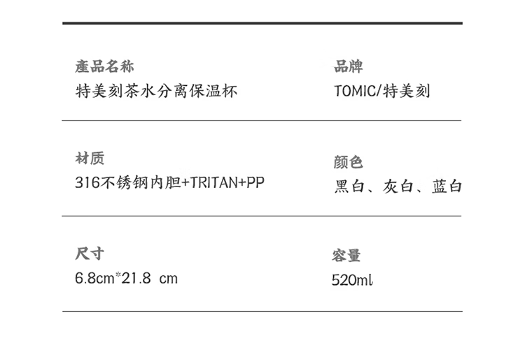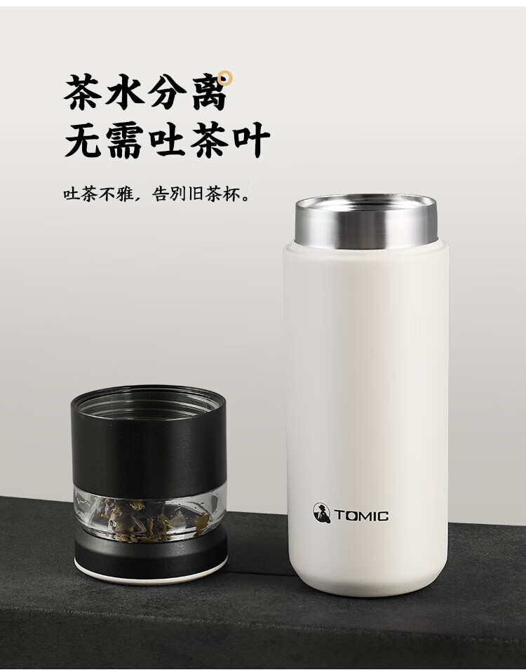 特美刻TOMIC 茶水分离保温杯 316真空不锈钢水杯大容量保温茶杯办公室杯子 TW60020 黑白色520ml 父亲节礼物