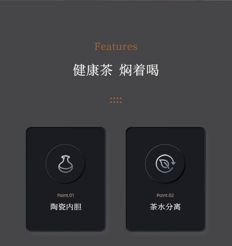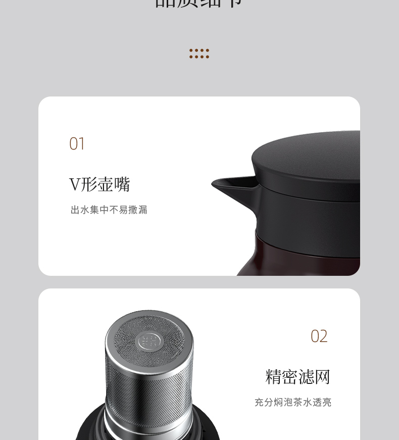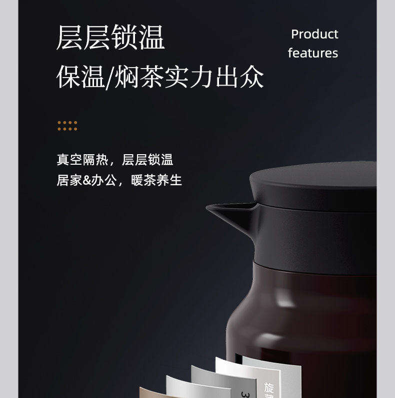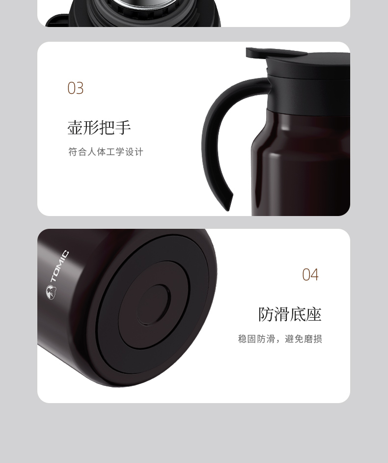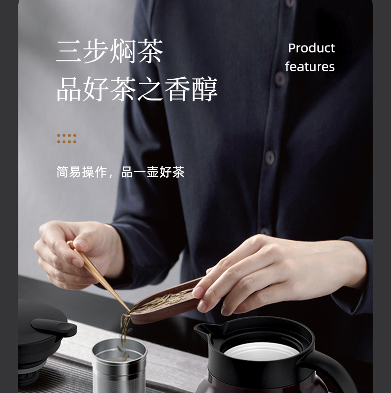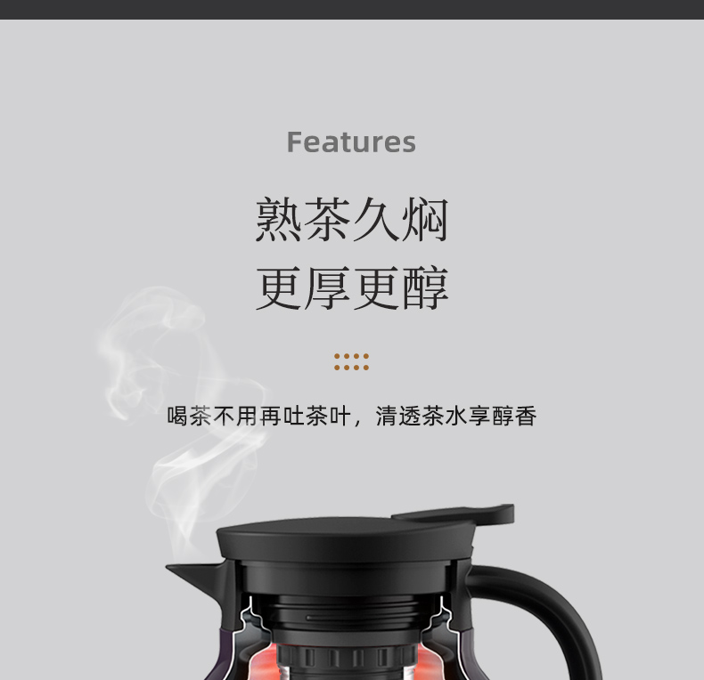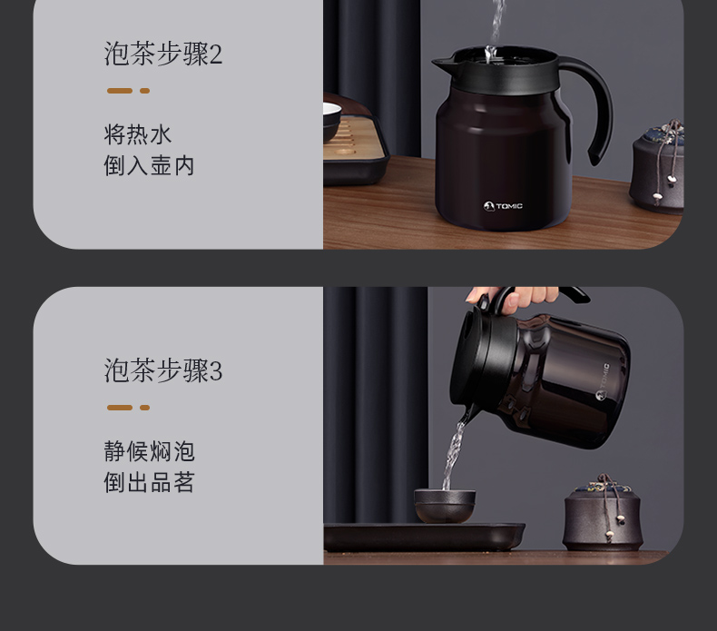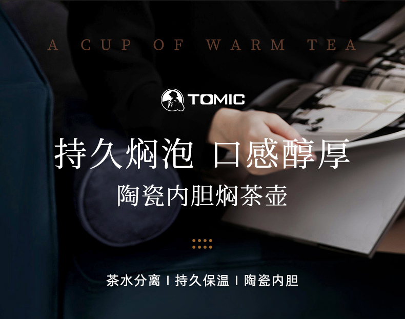 特美刻TOMIC 焖茶壶旋薄陶瓷内胆闷泡壶大容量保温壶茶水分离泡茶壶TJ70020咖啡色