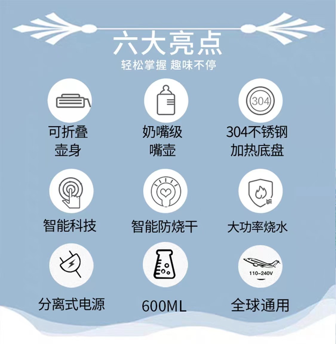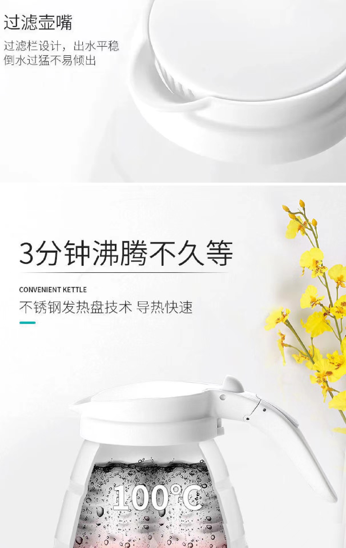 KIYERSY便携式烧水壶折叠电热水壶旅行宿舍小型迷你家用水壶自动断电烧水养生杯泡茶器HY-01